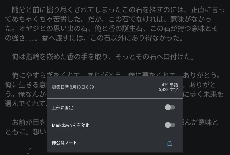 暑いけど執筆頑張ってるよーって言う証拠品(*´ω`*)うん。今回はオチを最初に書いた。今は真ん中のもっこりシーンを書いてる。今で5500字💦多分、A6折本24p(上中下巻セット)60円になっちゃいそう…😂むしろ、下巻にスペースができちゃうから、もう一本書かないといけないかもしれないorz ネップリコピ本にすると高いしなぁ(´・ω・`)