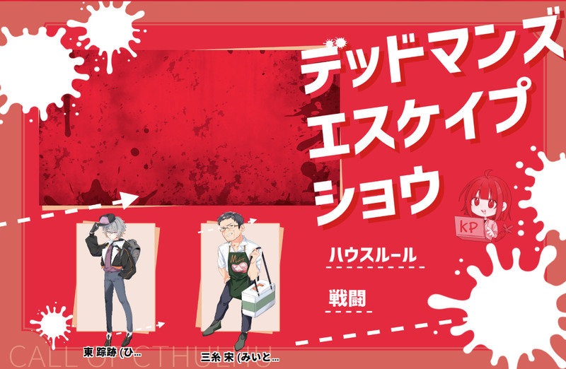めな🥕☆quiet followMEMOデッドマンズエスケイプショウ🔴𓂃𓂃𓂃𓂃𓂃𓂃𓂃𓂃𓂃𓂃𓂃𓂃🔴 クトゥルフ神話TRPG 『デッドマンズエスケイプショウ』KP:めなPC:三糸 宋/コメフラ 東 踪跡/老名🔴𓂃𓂃𓂃𓂃𓂃𓂃𓂃𓂃𓂃𓂃𓂃𓂃🔴両生還 シナリオクリア Tap to full screen (size:1232x804).Repost is prohibited Let's send reactions! freqpopularsnackothersPayment processing Replies from the creator Follow creator you care about!☆quiet follow めな🥕MEMO脱獄は乙女の嗜み┈┈┈┈┈┈ ❁ ❁ ❁ ┈┈┈┈┈┈ クトゥルフ神話TRPG 『脱獄は乙女の嗜み』KP:ぽっぷさんHO1:西園寺 弓鶴/まことさんHO2:上河内 撫子/めなHO3:一条 史織/えむぅさん┈┈┈┈┈┈ ❁ ❁ ❁ ┈┈┈┈┈┈シナリオクリア 全生還 めな🥕MEMOプルガトリウムの夜☪︎┈┈┈┈┈┈‧✧̣̥̇‧┈┈┈┈┈┈☪︎ 新クトゥルフ神話TRPG 『プルガトリウムの夜』KP:はまちさんHO1:有栖 夕陽/かたくりこさんHO2:赫夜 なよ/めな☪︎┈┈┈┈┈┈‧✧̣̥̇‧┈┈┈┈┈┈☪︎エンディングC 両生還 めな🥕MEMO血命傷///////////////////////////////////// クトゥルフ神話TRPG 『血命傷』KP:無音缶 様HO1:冷山 世玖/めなHO2:竹下 唯月/夢椿 様HO3:出森 希/野菜 様/////////////////////////////////////END2 全生還 めな🥕SPOILERクトゥルフ神話TRPG『遺香廻り』自陣(一章と二章のちょうど間の話) めな🥕MEMO絵花屋の二匹⟡.· ⎯⎯⎯⎯⎯⎯⎯⎯⎯⎯⎯⎯ ⟡.· クトゥルフ神話TRPG 『絵花屋の二匹』KP:グプだんご 様HO1:スコル/紙魚 様HO2:北美 烽火/めな⟡.· ⎯⎯⎯⎯⎯⎯⎯⎯⎯⎯⎯⎯ ⟡.·END D 両生還 めな🥕MEMOゆめゆめおやすみ街✧• ─────────── •✧ クトゥルフ神話TRPG 『ゆめゆめおやすみ街』KP:めなKPC:烏飼 慈/めなPC:ブルー/グプだんご✧• ─────────── •✧シナリオクリアエンド1:おやすみ街 recommended works kunikitatatataDOODLEにりつ3+ありがとうございました!とある夏の特異点在住のモブ山モブ子目線でお送りするエドぐだ♂です。「海の家にいるらしいイケメン店員を求めて」 3239 めな🥕SPOILER食卓で喋ろう 2 ケフィアDONEめっちゃ遅刻しましたが、ドちゃお誕生おめでとー!!🎂✨✨✨一応、ロ君の誕おめイラストとも対(?)になってますので、そちらも再掲しときます😚30年後を節目に転化したイメージで描いてます😄AI学習除けがてらパス付にしてます。すいません😓・94を愛してますか?(yes/no) 2 ぬしヲDOODLE2024/12/25🎄Happy Holidays🎄うちの鉄血が1番かわいい!!!!! f0u_XMEMO銀鐧ss引き続き夫婦ごっこしながら任務をこなしている銀鐧です 10845 KaimenSpongeDONEさんむそ現パロ 徐庶と馬岱の食べ歩きシリーズ付き合ってるけどまだ同棲してない頃のクリスマスのようす左右はどちらでも。 770 PremmyDONEMerry Christmas 2024 na ขอถวายวิญญาณให้เหล่าเขยใภ้ที่น่ารักของผมครับ ขอบคุณครับ/พับไมค์ 5 POI10923202DOODLE落書き Lily_nakataroDONE12/25 瀬戸