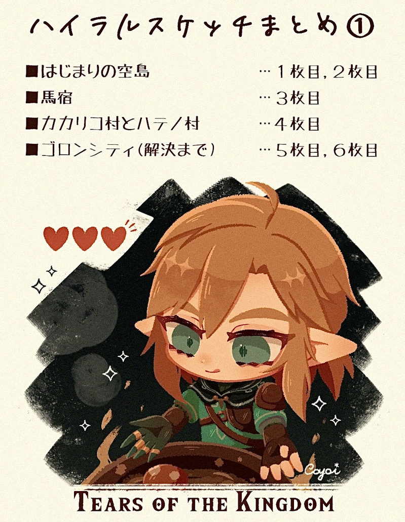 co_09vrg☆quiet followSPOILER⚠︎TotK ハイラルスケッチ(日記)①〜⑥✧ネタバレ内容の為、1枚目にスケッチ内容を記載しております。閲覧の際は自己判断をお願いします。✧旅路の記録をしながらハイラルをのろのろ旅してる途中なので、その時点での気付きや感想と適当な考察を書いてます。 show all(+6 images) Tap to full screen (size:1007x1299).Repost is prohibited Let's send reactions! freqpopularsnackothersPayment processing Replies from the creator Follow creator you care about!☆quiet follow co_09vrgDOODLEティアーズオブザキングダムプレイ当時、ハイラルを旅しながら描いていた日記です。※個人的な感想とネタバレしか含みません。 27 co_09vrgSPOILER⚠︎TotKハイラルスケッチ⑱(イチカラ村/偽…ちゃん)✧ネタバレ内容の為、閲覧の際は自己判断をお願いします。✧旅路の記録をしながらハイラルをのろのろ旅してる途中なので、その時点での気付きや感想と適当な考察を書いてます。 3 co_09vrgSPOILER⚠︎TotKハイラルスケッチ⑰(マスターソード関連)✧ネタバレ内容の為、閲覧の際は自己判断をお願いします。✧旅路の記録をしながらハイラルをのろのろ旅してる途中なので、その時点での気付きや感想と適当な考察を書いてます。 3 co_09vrgSPOILER⚠︎TotKハイラルスケッチ⑯(ゾーラの里 解決)✧ネタバレ内容の為、閲覧の際は自己判断をお願いします。✧旅路の記録をしながらハイラルをのろのろ旅してる途中なので、その時点での気付きや感想と適当な考察を書いてます。 2 co_09vrgSPOILER⚠︎TotKハイラルスケッチ⑮(ゾーラの里)✧ネタバレ内容の為、閲覧の際は自己判断をお願いします。✧旅路の記録をしながらハイラルをのろのろ旅してる途中なので、その時点での気付きや感想と適当な考察を書いてます。 2 co_09vrgSPOILER⚠︎TotK ハイラルスケッチ⑭(散策日記/ソ……様)✧ネタバレ内容の為、閲覧の際は自己判断をお願いします。✧旅路の記録をしながらハイラルをのろのろ旅してる途中なので、その時点での気付きや感想と適当な考察を書いてます。 2