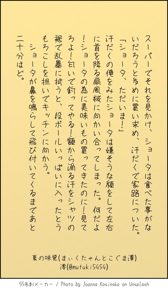 mutuki5454☆quiet followMEMO初期まぃくたやんとこぐま澤。 #こぐま澤 Tap to full screen (size:550x950).Repost is prohibited Let's send reactions! freqpopularsnackothersPayment processing Replies from the creator Follow creator you care about!☆quiet follow mutuki5454MAIKING兎年なので、ウサギ澤とまぃくたやんの話前半。 8 mutuki5454DONEカレー作るマイ相 4 mutuki5454DONEほっぺ膨らませてもの食べる澤が見たかった。ちょっとお色気あり。 6 mutuki5454DONEマイ相でほっぺ膨らませてご飯食べるの見たかった。 2056 mutuki5454DONEまぃくたやん澤がご飯食べに行こうとしてるお話。 6 mutuki5454MEMO初期まぃくたやんとこぐま澤。 related works mutuki5454MEMO初期まぃくたやんとこぐま澤。 mutuki5454MEMO冬の寒さとまぃくたやんの寒さはいっしょって話 2 mutuki5454MEMOこぐま澤とまぃくたやん。 2 mutuki5454MEMOこぐまとまぃくたやん。春の出来事 3 recommended works ranji_ayanoPASTマイ相漫画・2「バレンタイン」 5 ヰノウエDOODLEマイ相ちゃんとしたものを食べさせたい ヰノウエDOODLEマイ相らくがき4コマ 2 ヰノウエDOODLEマイ相マイクの手が大好きな相澤先生 8 ヰノウエDOODLEマイ相構ってちゃんマイク ヰノウエDOODLEマイ相とエリちゃん 2 ドライアイDOODLEお互いの推しパンツ履いてた日🎤=意図的👀=バックプリント気づかなかったまぐれ 2 ななみDONE女体化注意。一応ワンクッション。マイ相のつもり。たぶん続く。 ヰノウエDOODLE七三の日同期 2