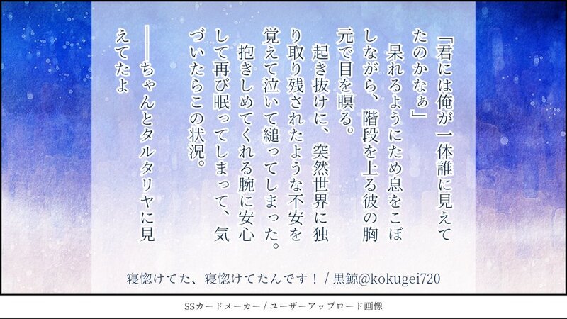 貴方はタル×蛍で『寝惚けてた、寝惚けてたんです!』をお題にして140文字SSを書いてください。