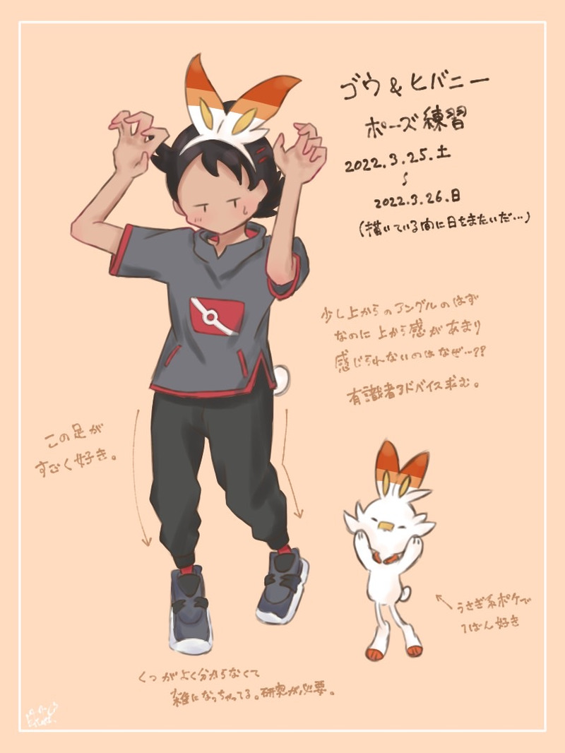 えーこく☆quiet followTRAININGゴウとヒバニーでポーズ練習。そしてくだらないメモと1枚絵。 #ゴウ Goh #ヒバニー Scorbunny (Pokémon) #サトシ Ash Ketchum #ポーズ練習 pausePractice show all(+2 images) Tap to full screen (size:810x1080).Repost is prohibited Let's send reactions! freqpopularsnackothersPayment processing Replies from the creator Follow creator you care about!☆quiet follow えーこくPROGRESSSSRなサ。 えーこくDONEロイくんとホゲータ。 えーこくTRAININGグラジオくん。髪の塗り方をいろいろ考えてみたけれど結果、よくわからんかった。 えーこくDONEゴウとエースバーン えーこくDONE制服ゴウきゅんです。 えーこくSPUR ME後ろ姿ゴウきゅん。 related works アルや7DONEアニポケのゴウ君かわいいよねって絵。ヒバニーがラビフットに進化していないけど…リーグカード風。番号は想像で入れました。 ろきのDONE歯が可愛い🦷 soen3519016DONEヒバニーするヒバニー せろえーだぞっ(旧)DONE弟に頼まれたのでポケモンの最新作、「ポケットモンスターソード&シールド」の御三家を描きました(ヒバニーの近くに描いてあるリンゴは気にしないで下さい)今までの御三家の中(第一形態のみ)ではツタージャが推しでしたが今回、ヒバニーに越されましたねwヒバニーの右足にも絆創膏みたいのついてるのかな?追記 ヒバニーの歯を描くの忘れちゃった(テヘ) 3 ヨコヤ/yokoyaDONE深夜のニンジンどろぼう🥕 LerunechkaDOODLEScorbunny doodle (2019) aliTIRED にゃんちゅうDONEヒバニーのモーションが可愛すぎて何か描きたくなって描いたやつ描くのはいいけどおかげでポケモンがぜんぜん進まないあとメグが結構いい感じに描けてお気に入り 2 ぼるいるいINFOてすと