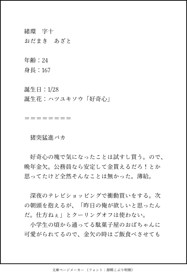 seto_z28☆quiet followDONE緒環 キャラシ show all(+3 images) Tap to full screen (size:630x928).Repost is prohibited Let's send reactions! freqpopularsnackothersPayment processing Replies from the creator Follow creator you care about!☆quiet follow seto_z28DOODLE誰ロクSS時系列はエピローグ前くらいパスワード:バンド名 2 seto_z28MEMO seto_z28DONE早瀬 沙幸キャラシ 4 seto_z28DONE咲坂江 キャラシ 5 seto_z28DONE藍瀬 漱 キャラシ藍瀬 涼花(姪) 9 seto_z28DONE華月 友仁 キャラシ※作成日と誕生日が被ったのはガチの偶然 4 recommended works なみきのポイピク箱DOODLE浅沼晋太郎さん誕生日おめでとうイラスト(2025年ver.+2024年ver.)CV浅沼晋太郎キャラで1番好きなアレックス(ストリートファイターⅤ)と一緒に!! 2 雪風(ゆきかぜ)。DONE翠くんと例のあれ(全自動卵割り機)翠「これで割った卵で厚焼き卵を作ったらどうなるのかと思ったからだ」 ろーるDOODLE【ワンクッション】現パロ/保健室で鼻すすりながらチクバンしてる受け尾クン(16歳)rkgk ヤニコ。DOODLE Mx_Merfolk_cosDOODLE兄上のおねだり soi1021MENUトリプル「J」アイドル_シリーズ、トリプル「J」アイドルのロゴ 3 osotonigoDOODLE本当にこういう本が欲しいのでガチで作ったろかなアキオ中心だけどほぼKアキだろうな成人済ですか?【Y/N】 2 SOHOWNOMODOODLEare you 18+?yes/no 2 元素記号DOODLEべしょ泣きそうすけくん