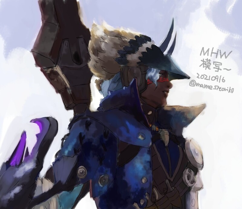 版権) 自ハンターさん。ゲーム内スクショの模写。