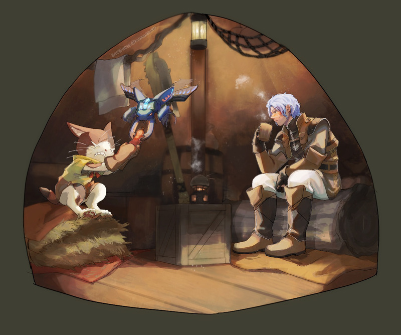 版権)自ハンター♂さんとオトモさんの絵を描きました