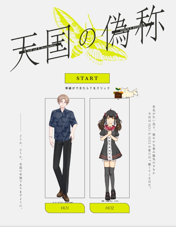 masho☆こそフォロできたCoC『天国の偽称』(KPレス)作:Alpha 様HO1:キース・キャスパー / アルちゃんHO2:亜部 沙耶薫 / ましょEND「むかしむかし、あるところに」 ▷両生還「確証のできない約束はしないって言ったのは、キースでしょ。」 タップで全画面(原寸:708x910)無断転載禁止 リアクションをたくさん送って応援しよう! よく使う人気おやつその他支払処理中 作者からのリプライ 気になる人をどんどんフォローしよう!☆こそフォロ mashoらくがきOPéRA 未通過❌(こんちゃん🎐は❌)継続立ち絵、2〜4の色で迷ってる 5 mashoできたCoC『天国の偽称』(KPレス)作:Alpha 様HO1:キース・キャスパー / アルちゃんHO2:亜部 沙耶薫 / ましょEND「むかしむかし、あるところに」 ▷両生還「確証のできない約束はしないって言ったのは、キースでしょ。」 mashoらくがきブルキラ 未通過❌こうなりたかった…なぜ…なれなかった………の落書きend White さいこーーー!!!!!!!! mashoできたTRPG「私のダイアリー」 └作:むつー様GM:ピノ先輩PL:ましょシナリオクリア📖🖊うおおおおすげええええまじかああああああまさかの展開だったし……すごい嚙み合い方をした。楽しかった………!!!ありがとうございました!! mashoらくがきはじめての社会科見学! 未通過❌つゆ成長後〜〜 mashoできたCoC「あのこが巨大化するシナリオ」 └待鳥ちあま様KPC:亜部 沙耶薫 / ましょPC:キース・キャスパー / アルちゃんEND1 - 両生還 -「さやかはキースの恋人だからね〜!」キースが巨大化さやかのスカートを気にしててめちゃおもろかった