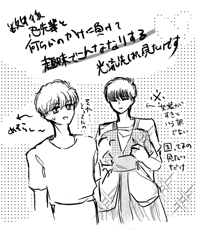 tori☆quiet followDOODLE「趣味でこんななりすると思うか?」光流先輩のこの台詞読むたびに、これフラグでしょう。忍先輩とこんななりする趣味(プレイ)の未来あるでしょうって思ってしまう。 #忍光 shinobu Tap to full screen (size:1185x1382).Repost is prohibited Let's send reactions! freqpopularsnackothersPayment processing Replies from the creator Follow creator you care about!☆quiet follow toriMEMO『理想の…』もちまわりシンデレラの光流先輩の「似ている…!」発言の真意予想。光流先輩は理想の強い女性(義母)を探していたがいろいろあって、何故か好きな子は似ても似つかぬ男の忍先輩でまたそっからいろいろいろいろあって、恋人になり、最終形態のS先輩は……限りなく養父似であったとさ。めでたしめでたし。『知らず愛する家族を再現してしまうM先輩の図』 5 toriDONE『いる』正くん…彼の大好きな義兄は…もう…最低でも元旦〜5日まで、光流先輩実家に連泊する忍先輩おもしろ痛快です。おれの居場所はここに決めた!✨の割り切りの意思を感じます。すかちゃん(正月早々他人を泊めてほしいっつーのはちょっと悪いよなやっぱり😓)をこの形の回収最高です。相手んちにたくさん泊まるの『三日夜の餅』を連想します。迎え入れられ泊まってヨメ(ムコ)におさまる怪異とか… 5 toriDONE『元寮生はペース配分を心得ている』同居。 2 toriDOODLE『世界でいちばん萎えるやつ』きっと忍光。両者いちばんげんなりするプレイかな…と…。 4 toriDONE『受け攻め攻防戦』🌻⛄️?🌻?いえるよーになったのね。 10 toriDONE🍫🎂お礼絵集です。メッセージありがとうございます!! 5 related works toriDONE『間違いがあっちゃいかんしね』ホリデイ後の夏休み。ドキドキ(みんなで)おフロ。 toriMEMO『理想の…』もちまわりシンデレラの光流先輩の「似ている…!」発言の真意予想。光流先輩は理想の強い女性(義母)を探していたがいろいろあって、何故か好きな子は似ても似つかぬ男の忍先輩でまたそっからいろいろいろいろあって、恋人になり、最終形態のS先輩は……限りなく養父似であったとさ。めでたしめでたし。『知らず愛する家族を再現してしまうM先輩の図』 5 toriPAST以前上げた四コマのプロトタイプが出てきたのでうp。『きっとがんばって幸せになってる』の忍先輩のブチ切れてる顔が入ってるバージョンです。 toriDOODLE「趣味でこんななりすると思うか?」光流先輩のこの台詞読むたびに、これフラグでしょう。忍先輩とこんななりする趣味(プレイ)の未来あるでしょうって思ってしまう。 toriDONE『一字違い』『実践してやるよ』こう…あの感じでかけひきめいた攻防(もうイチャイチャになってる)をずっとしててほしい 2 toriDONE『お楽しみはこれからだ!』より。眠っている光流先輩をみつける忍先輩。2枚目は…もし私がGWできしめんMADを作ったら、サビがここになるなと思って…(?) 2 toriDONE『悪党受け』わざとです。誘い受けっていうか計略家受けというか。わざとなんだけど、素っていうか。ホリデイで判明した通り、忍先輩のこと同じくらい意外とかなり愛してると思うよ光流先輩。 桂樹-keiju-DONEキノコ🍄の日の忍光です😅松茸を調べていたら、探し方というサイトを見て思いついた、頭の悪い話です。 toriDOODLE『交渉』(なんだかんだ初回だからと気を張っていたかもしれないS先輩)「あとででも」って未来があってうれしいよね。すき(愛)なかしたい(愛+趣味) 4 recommended works 若草甚DONEロナドラ♀新刊サンプル 8 toriDOODLE『交渉』(なんだかんだ初回だからと気を張っていたかもしれないS先輩)「あとででも」って未来があってうれしいよね。すき(愛)なかしたい(愛+趣味) 4 azko_GODARCADOODLEGODARCA 一応アフター絵のためワンクッション place_rimDONE午前6時のブルーアワー煉炭「酔いどれ煉獄さんと」8ページ漫画。中味ない、やまなしおちなし、フワッと読んでいただけたら!パスワードは、CPの英文字四文字です!(イベント時から変更) 8 hongquDOODLE大姐姐小处男 lilyac_99213057DOODLErinmiki limit4696DOODLEジ~~~ク!!!を久しぶりに描いた気がする。これいつもいってるな?描いたら色つけたくなったのでつけたのとモノクロどっちも上げちゃお~!!!見てよこの男。最高の願面してやがる。いやまってめっちゃ顔良~~~!!!きゃっきゃっ 2 Chali44105076DOODLEAre you 18? Yes / No caramilikaDOODLEIvti nsfw doodleAre you over 18? Y/n