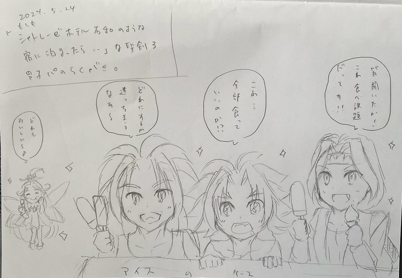 辺境のなめこ☆quiet followDOODLE山梨旅行でシャトレーゼホテル石和に宿泊した記念落書き(2024.5.23〜24)ウェルカムケーキにアイスクリーム食べ放題(流石に全種類は食えない(^◇^;))、お部屋のおかきもシャトレーゼ製と、流石シャトレーゼだなぁ…(´﹃`)と胃袋掴まれっぱなしでした(2024.5.24) ##聖剣伝説3ToM show all(+1 images) Tap to full screen (size:1280x887).Repost is prohibited 辺境のなめこDOODLE親友のリクエストで描いた節分用落書き、スタイリッシュ豆まき…あれから4ヶ月後、彼らは本気で豆まきをし出すのであった…( ̄▽ ̄)※姉が無駄に本気で色塗った(笑)(2024.6.8) 辺境のなめこDOODLE姉が描いたデュランのラフを元に、6/1に購入したユニアーテレーズカラーで、ほぼ一発描きしたもの。何も考えず気楽に描けてめちゃくちゃ楽しかったー(∩´∀`)∩ワーイデュランは脳筋一直線の感じのデュランが個人的に好みなんですよね(≧∇≦*)www(2024.6.7) 2 辺境のなめこDOODLEレンジャーホークアイの落書き。姉に「シリウス水彩画紙でなんか描いて( ̄▽ ̄)」と言われて描いたホークアイたち。シリウスさんに穴が開いて線画描き直したり、親友から色塗りスパルタ(笑)を受けたのも良い思い出( ̄▽ ̄)(2024.6.2) 4 辺境のなめこDOODLE山梨旅行でシャトレーゼホテル石和に宿泊した記念落書き(2024.5.23〜24)ウェルカムケーキにアイスクリーム食べ放題(流石に全種類は食えない(^◇^;))、お部屋のおかきもシャトレーゼ製と、流石シャトレーゼだなぁ…(´﹃`)と胃袋掴まれっぱなしでした(2024.5.24) 2 辺境のなめこDOODLE2024.5.9〜10に熱海旅行に行った時の落書き。 来宮神社の御神木(樹齢2100年超え)の大楠に感動したので描こう!→現実:木が描けない(≧∇≦*)💦と残念クオリティですが、またこうして旅の思い出を残せて良かったなあと( ̄▽ ̄)2024.5.15 辺境のなめこDOODLEカリスマカラーで姉が気合いを入れて塗った、ゆるい落書き 普段すやハムくんのスタンプを愛用してるんですが、そのポーズをホークアイ(とサボテン君)が真似たら…という、謎な落書き。ゆるいホークアイは描いてて楽しすぎるヽ(´ー`)ノ(2024.5.13) recommended works うたきDOODLE▲黒猗窩▲童猗窩わからせられる座 2 saninokawaDOODLEオズフィガアドベントカレンダー2024に参加しました!https://adventar.org/calendars/10814企画ありがとうございます今年もたくさん嬉しい!! Taino_0520DOODLE黄黒らくがき曲パロとかケモとか 2 ほけじいDOODLEクリスマス仕様 ハーリィDONE眠り王子の話 15 POI9500358DOODLE羽泉向pwp 4311 kamijo_gDOODLEゆうおハッピーホリデー ゆず茶DOODLEデジタル練習ラクガキ。過去一緒に暮らしてた時、呑み比べになって、一口でアウト胎さんと酔わない真さん、だったのかな…という妄想。 sirasu234DOODLEメリークリスマス
