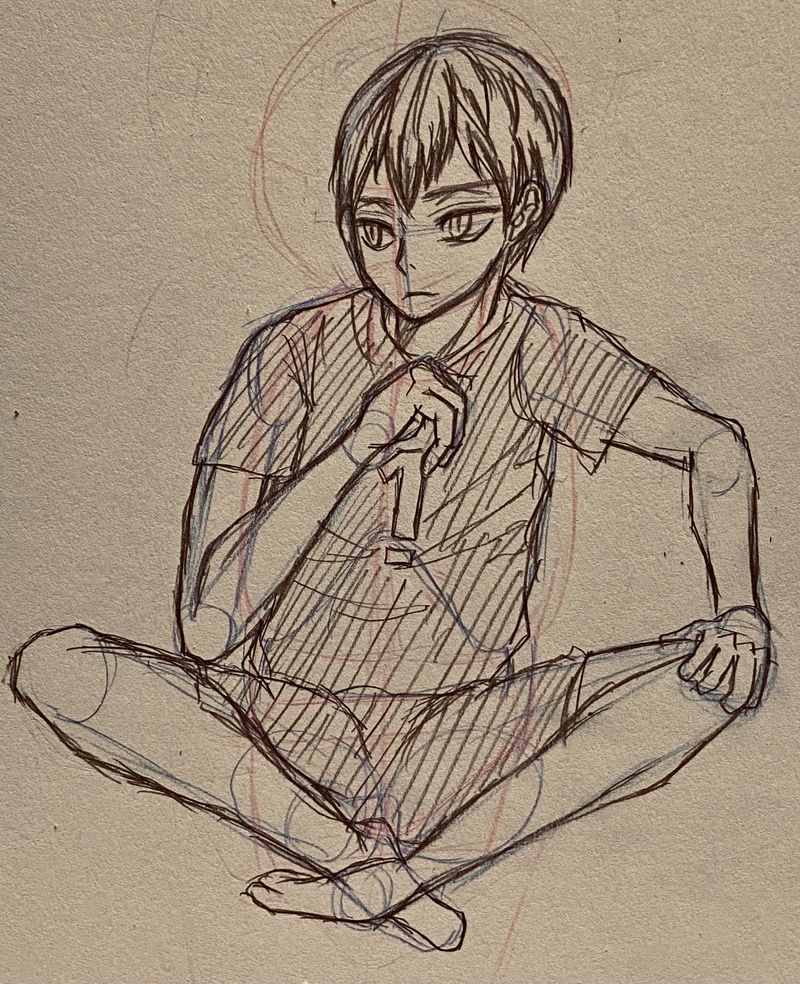 下描きに使ってるカラー芯が紫しか残ってなくて、それで下描きすると黒との境界線が分かりにくくなってしまう…早く買ってこないとな