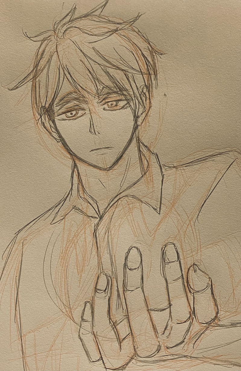 おさむを描き始めた。いつもの通り下描きは酷い