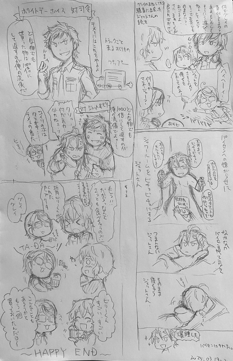 ジェットさんとかパイセンとかグレイとかビリーくんとか騒音組とかなんかそんなごちゃごちゃした落書き。
