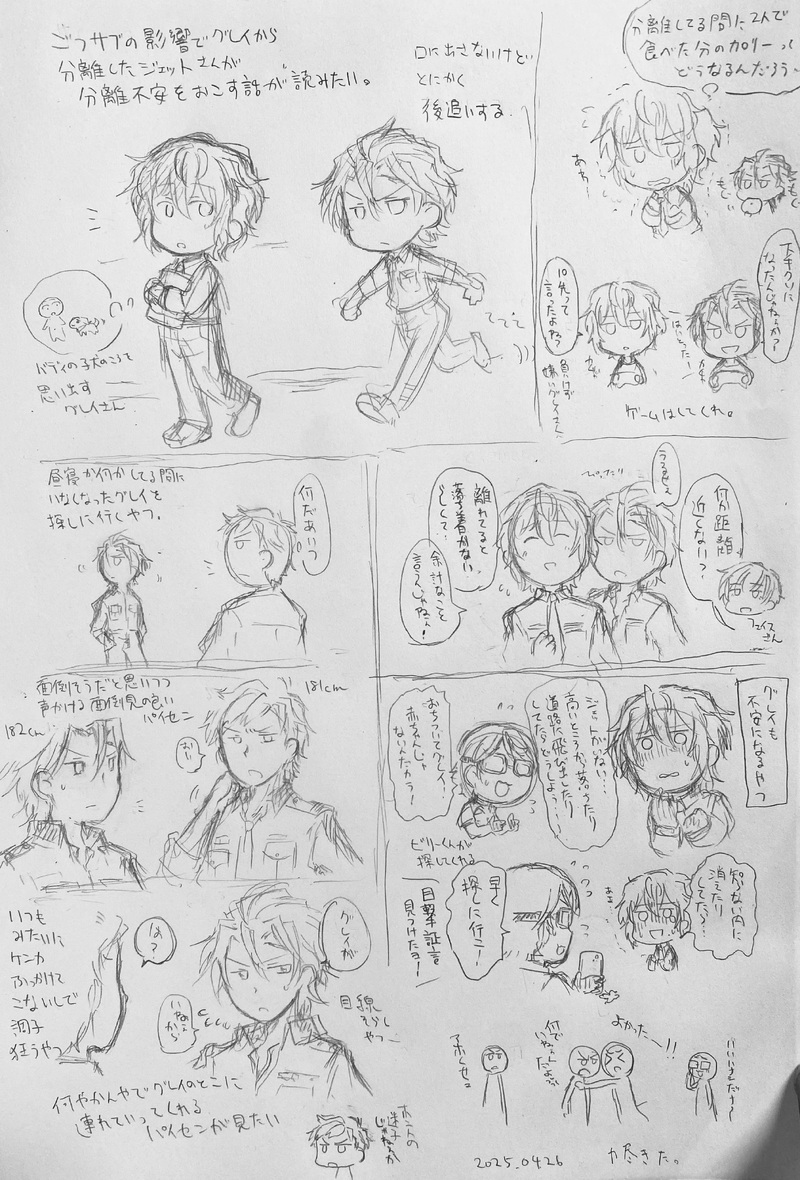 つぶすけ☆quiet followDOODLE分離して欲しくない私vs一時的になら分離して欲しい私vsダークライえっ、分離不安って萌える……萌えるな???と思って……………… ##エリオスR Tap to full screen (size:2610x3851).Repost is prohibited Let's send reactions! freqpopularsnackothersPayment processing Replies from the creator Follow creator you care about!☆quiet follow つぶすけDOODLE他のカプやコンビだとこうはならんのですが、強弱だとなんか司令が絡みに行ってしまう。アッシュパイセンは自分を組み敷くほどの気概を持ったグレイが好きだろうし、グレイは受けでも尚プライド高いアッシュパイセンが好きだと思うんだよな。そういうのが私が好きなだけですが。司令は塩対応して欲しいですが、それだと描写と齟齬が出るからモブおじさんの方がいいのかもしれない。私はモブおじさんになりたい。 つぶすけDOODLEメイドグジェッさんの好きなところ言いたい。リボン🎀とフリフリ大好き!グレイメイド服、胸元のリボンでオタクっぽいメイドになっている気もする。 つぶすけDOODLE洋館ミステリーが楽しみすぎるんじゃ!!!ジェットさんがメイド服(給仕です)を着るのが確定となった今、描いて出すしかないじゃない!!!ストーリー読むまでしか出来ない妄想をするなら今の内!シュッシュッ!洋館の主人(仮)をSATSUGAIする給仕さんを描くなら今の内!!俺の中では今こうだから!!!オチがない。素直に10コマ漫画にした方が良かったかもしれないと思わなくも無い。 つぶすけDOODLE肩車、そういえば前にさせたな!と思って、肩車からのバックドロップ決めさせたくなっちゃった。こう、こうしてこうなってこう!を考えるのが好き。パイセン、プロレス技がやたら似合う。すーぐイチャイチャさせたくなってしまう。 つぶすけDOODLEクッソ雑だけど、パッションのままに描いた。こう、こういう、こういうの!昼なおくらい怪しげな洋館!何かを隠すメイドさん達!姿を現さない主人!何も起きないはずがなく……良い舞台が整ってきたなぁ!(妄想)イベント前の妄想期間好き。 つぶすけDOODLETwitterに投げてたやつ 4 recommended works mainichinemuichDONE相互さんのツイートがあまりに解釈一致だったのでネタをお借りしました。※ご本人に掲載許可いただいています!ありがとうございます!※すけべはありません!ギャグです!弊イデアズにおいても性欲は🐙の方が溜めがち(小出しの発散方法が分からない)だと思っているので、「🐙ちゃんは爆発力がすごくて、スイッチ入ったら野生が目覚めてしまい大変そう」という呟きに飛びついちゃいましたね。(そうですか) 2 หมาหมึกกุ้งDOODLE18↑ (yes/no) しょぼまる。DOODLE3-4才くらい??初びっくり固まり有一郎 3 白井ぽらるPROGRESS目が微妙 eelec9DOODLE🌱🌱🦉 抹茶鲸鱼蛋糕TRAINING还是魔法世界的番外,优秀的魁地奇选手小纯想抓住机会把自己的爱意献给巴巴。“我要在最耀眼的时候把我的爱献给耀眼的你。” 10789 混彩カオスDOODLEブラックサンタコスして手でハート作ってくれる系ヤンキー(属性過多)1時間20分#オリジナル radonDOODLE謎回 abe248720419003DOODLEリゾテト