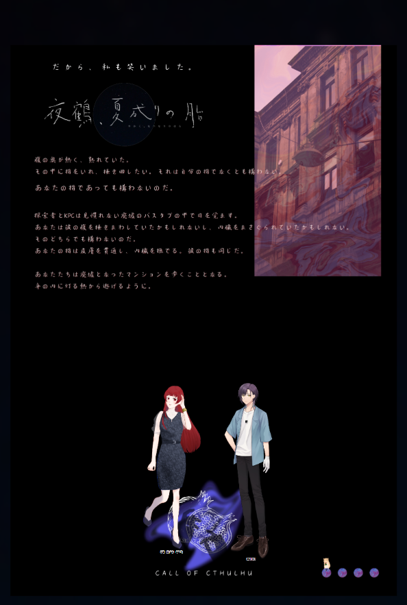 a_trpg_ki☆quiet followDOODLE夜鶴、夏成りの胎 #TRPG Tap to full screen (size:594x883).Repost is prohibited Let's send reactions! freqpopularsnackothersPayment processing Replies from the creator Follow creator you care about!☆quiet follow a_trpg_kiINFOTRPG 10月の卓スクショ 5 a_trpg_kiINFOTRPG 2025年 9月の卓スクショ 14 a_trpg_kiINFOTRPG 2025年 8月の卓スクショ 14 a_trpg_kiINFOTRPG 2025年 7月の卓スクショ 19 a_trpg_kiINFOTRPG 2025年 6月の卓スクショ 15 a_trpg_kiINFOTRPG 2025年 5月の卓スクショ 16 related works ぽんずDOODLE霧一とロコン誰にも賛同してもらえないことを前提に言うんだけど、なんか似てる気がするんだ…前髪のあたりとか?かわいい今ふと思ったけど、直人はサーナイトとか並べたいな~PC×ポケモンはたまーに見たくなるね みもりよぞらPAST獣人(げっ歯類のチンチラ)のハイプリースト(男の娘)[性格]人懐っこくスキンシップをとるのが好きだが、基本的にインドアで面倒くさがりな感じ きよし@キバ&ウィザード履修中DONETRPG「デッドラインヒーローズ」のPCキャラ 「オダマキ」身長(ヒール込み)189cmのオネェ 小鳥遊PROGRESSハイフェッツ草案 発芽ゴリラPROGRESS何もないのもアレなので立ち絵進捗ポイポイ!前上げたのと大して変わってないとか言わない! #進捗 #TRPG きよし@キバ&ウィザード履修中DOODLETRPGで作成したPC 圭(ケイ) 28歳「男娼の限界腐男子」と言う設定 みもりよぞらDOODLE現代入りネタで、色々な手違いが重なって某奇祭の御神体に跨る事になった獣人の男の娘、この時期はこの類(子孫繁栄祈願?)の祭りが多いそうで。 りゅうしDOODLEメカバレ風 totukiDONEFateTRPGで使ったキャラ絵。オリ鯖オリマスターご注意。 5 recommended works misora_dreamSPOILER君の胴ネタバレ 現行・未通過❌こわかったよぉ… 水晴-MinaSe-DONEインセイン『古河原邸』ありがとうございました!!文字あり、文字無し、加工前、下描きまとめました。映画化か書籍化かアニメ化お待ちしてます…!!! 4 paruniwaDOODLE sinratakumaSPOILER昨日の絵チャで描いたかなきみのあの人。 2 TRPG_FireMSPOILERAconite げんみ×HO2に狂った結果始まった1日1CP絵㉑※腐注意 4 udukiDONE今年の卓の立ち絵ディスプレイまとめです🎲たくさん遊べて嬉しい〜!🥳🥳ディスプレイがないやつも入れてます 17 404namelessDOODLEIF瓷(♀),跟♂没啥性格区别含苏+契卡切片,以及三只小熊 5 _tannbo_24DOODLE払えるのかい!払えないのかい!!どっちなんだい!!!!!!!!もう金貰えるなら割と何でもするようになってしまっている万年金欠ギャンブラー獪♀と獪♀に金さえ払えば割と何でもしてくれることにハマってしまった善の地獄のエロ日常 tanosi_trpg_SPOILER【ロッカー】実録感想ネタバレ絵パス→ネタバレだぞ!大丈夫!?yes or no 2