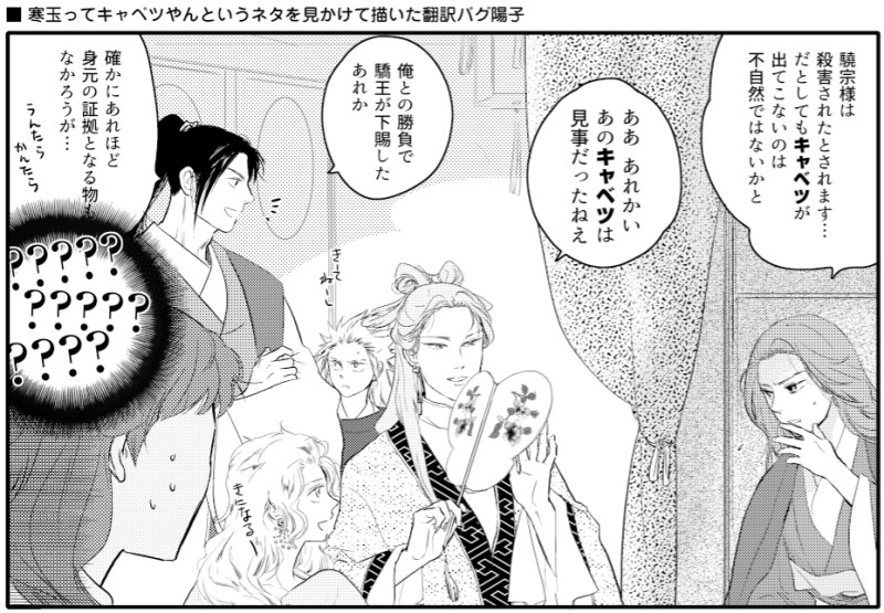 玉兎@4U☆quiet followMEMOprevious show all(+1 images) Tap to full screen (size:929x645).Repost is prohibited Let's send reactions! freqpopularsnackothersPayment processing Replies from the creator Follow creator you care about!☆quiet follow 玉兎@4UDOODLEこれは驕王朝時代に「丈将軍はドスケベエッチ淫靡罪に該当するのではないか」との諫言があり地下牢の寝台でモブ高官たちから身体検査()をされた丈将軍が王の勅命により特免されたため急いで救出に向かった麾下が目撃してしまった姿(ない話)(オタクのノンブレス早口語り)とても健全かつ何事もない図、丈将軍も「さっさと外せ」モードですが何事かがあった跡はあるのでワンクッション置きます。 玉兎@4UDONE #2025エア阿選オンリー 合わせの鳩の日漫画。同人の基本は「思いついちゃったからには…ネッ」なので突貫で描きました。阿選沼そのものが裏テーマなので、ラストにおまけ入れてます。饕餮紋に関しては良渚文化・河姆渡文化あたりの遺物を参照しています。最後のも一応、饕餮紋と同じライン上にある鳥の出土品から。 9 玉兎@4UDOODLE冬コミ新刊『CHINESE BOX: Reboot』より、17年ほど前の鉛筆描き漫画をやっとペン入れした『酔余』の原稿中に魔が差してやってしまった太客尚隆とラウンジ嬢利広のパロ。本編お持ちの方は併せてお楽しみください。ちなみにCHINESE BOXというのは入れ子状の箱やカラクリ箱の意味です。大昔にそんなタイトルの映画がありました。十二国記本にはちょうどええやんってことで18年ほど前に再録集を出した時のタイトルをこれにしており、今回はそれのリブートもの、ということになっています。今の内容に翻案する自信はちょっとついてきたので機会あれば2とかもやってみたいですが、今はキラキラしたものを描きすぎて疲れたので、そろそろ戴の男を描きたいお気持ちでございます。 5 玉兎@4UDONE十二国記の日のご祝儀第二弾。BlueSkyで進捗アップしてたやつのまとめ。十二国記リメイク再録集(冬コミで出せたらいいなと思って今頑張ってます。あと40枚)から、大体22〜20年ぐらい前に出した本から単発ギャグを諸々選出してリメイクしたもの。桓魋さんのケツ丸出し漫画については、今まで丈将軍にミル貝食わせたりドスケベエッチ淫靡偽王阿選のあられもない絵とか生首とかアップしても何もなかったブルスカさんに「露骨に性的な表現」というラベルをつけられたのでケツは駄目みたいです。 15 玉兎@4UDONE十二国記の日おめでとうございます。十二国記再録リメイク集に収録予定の、19年ほど前に描いてた箸休め的なダベリ漫画のリメイク品です。箸休めレベルの内容なのであんまりネットに上げるつもりはなかったんですが、ちょうど十二国記の日に一旦完成したので…。推敲前なので実際の本ではもうちょっとブラッシュアップされてると思います。 8 玉兎@4UDOODLEおもしろ慶国+α。いなだ先生の「マヌルネコは黄海にいそう」という発言から勝手に妄想してBlueSkyで描いた限界使令打線あれやこれやと、十月十日の阿選忌に滑り込みで描いた朝活絵。 4 recommended works teethDONEGood boy 2 べろす丼DONE木曜なのでアナログどんべと言いつつひかりな絵。もうすぐクリスマスでございますがこの時期になるとサンタ服なひかりちゃん描きたくなってるかもしれない紙はホワイトワトソンと透明水彩で塗ったひかりちゃんとこっそりうどんむし。うどんむしの大きさはある程度変えられるらしい RpgTrpgSPOILER #闇鍋ヶ丘CoC『花ヶ丘』シナリオネタバレありHO9🍶秘匿もちは⭕️ 5 mofutoREHABILIみっや女体化グラドル模写 ごにょにょDONE夢/魔門続き、その2 5 RESPECT_cornPASTカゲロウ・アマツキまとめ(パロディあり) 16 やややMEMO(独自解釈あり、死なないので安心して欲しいけど仄暗い、重い、でもHappy、書きたいとこだけ)付き合ってるはずなのに花吐き病になっちゃう至さん。至さんは何となく千景さんの中の大切な存在に気づいてて、ああやっぱりそうかと達観視してる。千景さんの気持ちが全くない訳では無いので遅効性でじわじわ1年かけて至さんの体を蝕んでいくはなし。の、ネタあげ 4706 しゅんMOURNING露出あり 怪我あり 緊縛あり離💊のつもりだけど脚しか写ってないから誰かもよく分からない 2 mitiru203INFOゲストはなんと13名‼️すごいぞ‼️並び順は掲載順となっています‼️