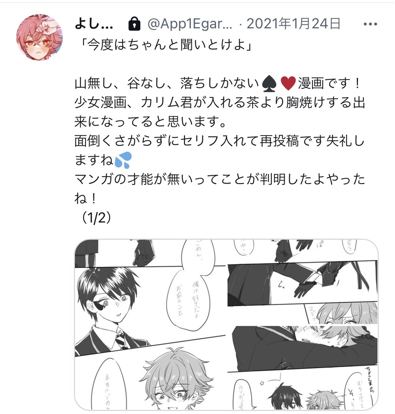 よしのり @App1e_gArnet いろいろ患ってるいい大人ツイステの腐ったやつと夢ネタを載せます ☆quiet follow Yell with Emoji Tap the Emoji to send POIPOI 25