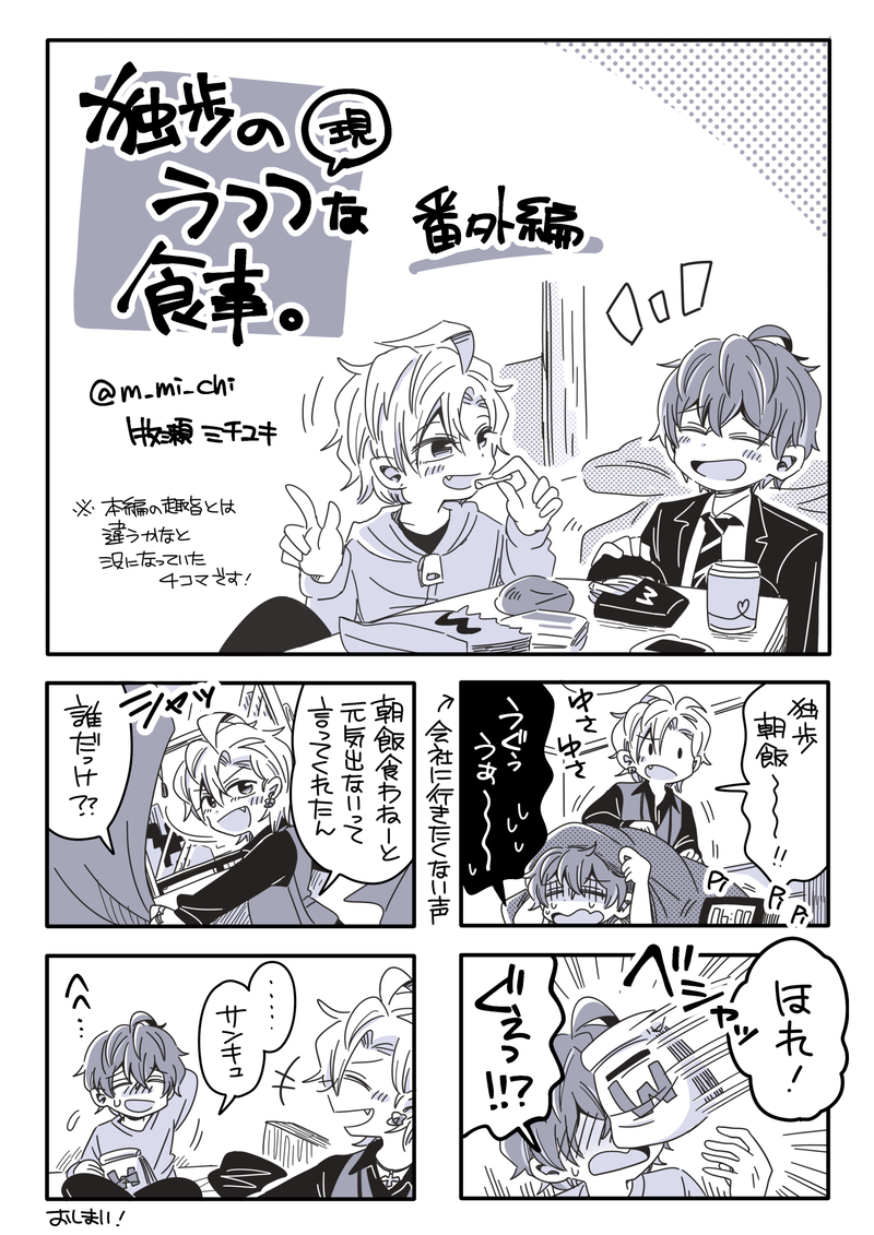 m_mi_chi☆quiet followDONEひふど『独歩のうつつな食事。』番外編何話からでもお好きに読めるお食事4コマです。※作品の都合上、表現が暗い部分も含みます。コチラの話でシリーズ完結です。 Tap to full screen (size:1500x2121).Repost is prohibited m_mi_chiDOODLE銃独 m_mi_chiDONEひふど今日は日曜日。 2 m_mi_chiDONEひふどとセンセー麻天狼の円盤のアレ 2 m_mi_chiDONEどひふ部屋の中のふたり※学生時代の話がちょこっと出ます 6 m_mi_chiDONEツーリング独歩さん m_mi_chiDOODLE喫茶店独歩さん