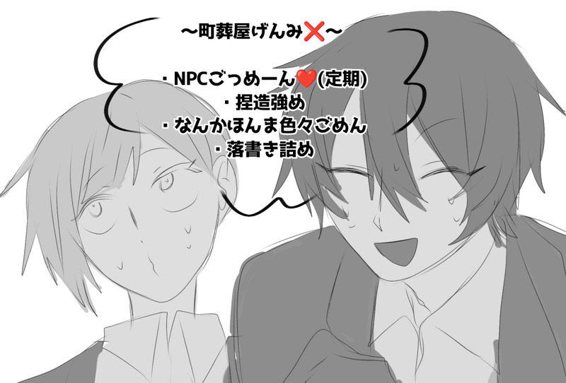 命の塊☆quiet followDOODLE・町葬屋げんみ❌誰でも許せる人向け(重要)好き放題してるNPC俺と和解しよう落書き詰め show all(+28 images) Tap to full screen (size:1024x694).Repost is prohibited Let's send reactions! freqpopularsnackothersPayment processing Replies from the creator Follow creator you care about!☆quiet follow 命の塊DOODLE⚠️奇奇快哉+町葬屋げんみ❌⚠︎・NPCしかいない・トレスパロしてる・細かい事は気にしなーい🎶パスワード▶後遺症 8 命の塊DOODLE⚠️シビュラげんみ❌⚠️・捏造絵・自探+αしかいない・描きたいもの書いてる 9 命の塊DOODLE⚠静テロげんみ❌・相互と絵チャ・全然好き勝手してる・多方面ごめんなさい 2 命の塊DOODLE静テロげんみ❌・自陣落描き絵・PC、NPCの解像度低め・捏造・衝動描き 9 命の塊DOODLE虚と覡げんみ❌・スチル描いた!・使った! 3 命の塊DOODLE町葬屋げんみ❌・落書き捏造絵・多方面に配慮してない・【定期】すいませんNPC【定期】 9 recommended works かげつきDONEVOID自陣妄想分 ネタバレはないけど一応げんみ×でとろいとびかむひゅーまんでもコインでコナーがやってるアレ 835 slice1024SPOILERCoC「VOID」HO3個別導入 ペア導入 ネタバレ感想げんみ×個別導入ペア導入終わったほさんは〇 884 OgcKor_cocSPOILERCoC6『VOID』⚠️ネタバレ/未通過✖️だいたい自探ネミコのまとめ 8 kuV1nnASPOILERVOID HO3 篝 仁 特殊立ち絵とロゴ、グッズ化、立ち絵没案 パスワード:HO4の名前数字 6 芩卿wMAIKING🏛💍🌱草稿流啊啊啊 byaku39DONEVOID6陣ファンアート(PL青梅さん、midさん、ごまだれさん、ひよこさん) 2 あおいSPOILERVOID げんみ❌非公開NPCの落書き〜 れてぃSPOILERVOID ネタバレ注意自陣から一年、ちまりちまりと書いてたのをどうにか形にしました。シナリオ終了後のほさんとほよんメインのお話です。書きたいところだけ書いたって感じなので意味はわからないかもしれない……けれど、あの世界の人々に何かしらの救いがあればいいなと思っています。自陣ありがとう KPもありがとう 大好きよ 3802 pumizu_hosiDOODLEVOID 現未×白い人 2