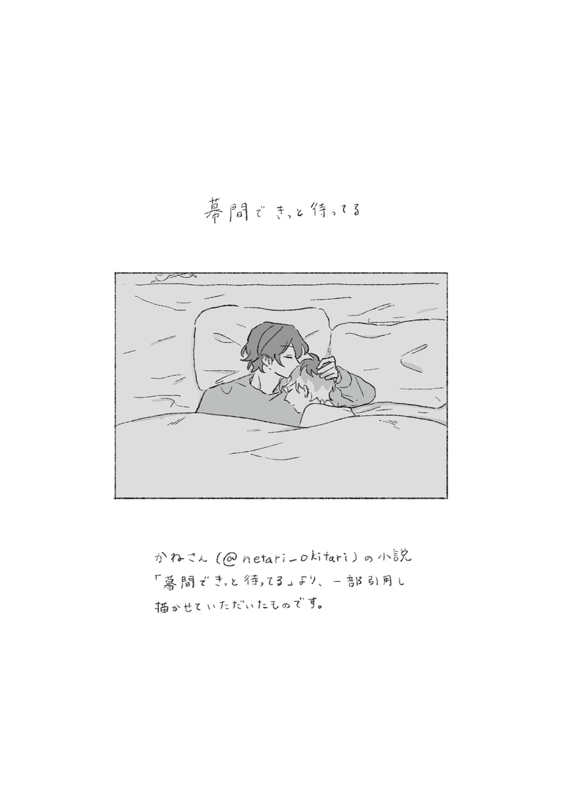 癸(みずのと)☆quiet followINFO僭越ながら、かねさん(@netari_okitari)の素敵なお話の大好きなシーンを描かせていただきました。元作品も本当に素晴らしいので、ぜひ読んでいただきたいです。▶︎ https://privatter.net/p/9173223『幕間できっと待ってる』 show all(+6 images) Tap to full screen (size:2331x3307).Repost is prohibited Let's send reactions! freqpopularsnackothersPayment processing Replies from the creator Follow creator you care about!☆quiet follow 癸(みずのと)DONEプリふたお疲れ様でした!お題【花火】をお借りして描いた夏の浴衣デートです🎆8/23土曜日までセブンで印刷できます(ひとつ前の投稿のお品書きに印刷番号や設定記載してます) 8 癸(みずのと)MENUぷりふたお品書き◼︎既刊展示◼︎ネップリコピ本当日企画 お題【花火】をお借りして漫画を描きました!よろしくお願いします🎆 4 癸(みずのと)PASTプリふた展示【後半】p46~78まで◼︎非公開中 43 癸(みずのと)PASTプリふた展示【前半】p4~45まで◼︎非公開中 58 癸(みずのと)INFO【6/15星願 プロメロ新刊サンプル】片思いの話 1、2話再掲+3話冒頭まで■A5/64P/600円/全年齢■東1コ50b めくる水平線*6/22追記 🐅通販予約開始しました!https://ec.toranoana.jp/joshi_r/ec/item/040031249291/頒布物は既刊なし新刊のみです🙇先着でポスカお付けします!当日はよろしくお願いいたします🌟 22 癸(みずのと)DONE片思いの話 2 6