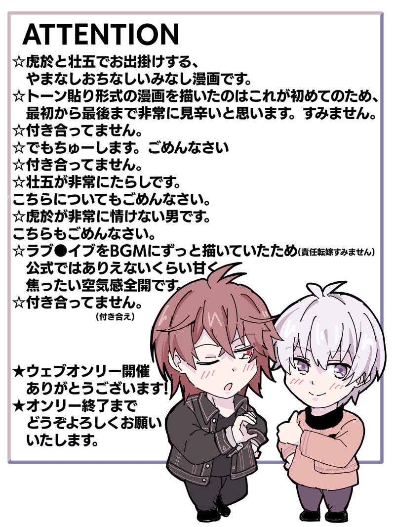 q3_Fraise_☆quiet followPAST2024.02.10〜02.12 🐯🌱うぇぶおんり〜にて掲載したものです。閲覧リポストいいね感想などなどありがとうございました! #虎壮 huZhuang show all(+14 images) Tap to full screen (size:960x1280).Repost is prohibited q3_Fraise_DOODLEオ/フ旅イベ始まってるし🐰🍵も出てるしもういいかな… 2週間前に描いたやつをそのままの温度で供養させてください… 3 q3_Fraise_MOURNING【🐯🌱】サムネ見て大丈夫そうな人だけどうぞ…。こういうノリのものしか描けなくて申し訳ない 7 q3_Fraise_MEMOそら豆さん( @gleam_45 )の虎壮本を読ませていただき好きなとこ描かせていただきました〜!めっっっちゃくちゃ良かったです。わたしが見たかった虎壮全てが詰まった聖書でした本当にありがとうございました🙇♀️🤎💜 3 q3_Fraise_MOURNING続き描いてたら本当に可哀想になり描くのをやめたやつ。虎壮。すごい中途半端なところでおわる。続きはない。※股●リされる話(ほんとごめん)。 3 q3_Fraise_MOURNINGラ●ホにきた虎壮。小学生テンションの残念な🌱しかいないので閲覧注意。 2 q3_Fraise_DOODLEもぬさけさん(@mnskdao)の初夜ツイが好きすぎて描かせていただきました😭🙏ありがとうございました!!!(※🐯🌱どちらも服着てない) related works hsmDOODLE【虎壮】裸エプロン考察(?) hsmPROGRESS【虎壮】ちぅ、のち、拒否、のち……? 3 maymfdear5REHABILIアイナナ人狼で虎壮に燃えたので書きました。以前の自分のつぶやきからできた話。あんまりにも久しぶりに書いたからちょっと気に入らない部分もありますがリハビリなので上げます。これから取り戻していきたい!!! 1989 mare_ki12DONE先天性女体化の虎壮♀です。壮五の一人称が私になってます。6月発行予定の虎壮エッティ短編集に収録予定。 4493 otaku42739DOODLE虎壮5~7번째는 트레틀과거날조有 8 hsmDOODLE【虎壮】※事後※上映会の「いい子だ」がぶっ刺さったまま抜けない……………………イケメンやばいです………………(ちなみにこれは多分そーちゃんが中イキできていい子だってことだと思う←) mare_ki12PROGRESS龍壮バームクーヘンエンドからはじまる予定の虎壮です!まだまだ龍壮(龍←壮)パートです!バームクーヘンエンドです!1はR-18ですが、今回は特にないです1から読んでください! 9272 hsmCAN’T MAKE【虎壮】※🌱が二人(男と女)※なんか急にしぼんだやる気ラフすぎてほぼ全裸なので一応ワンクッション※1/12に二枚目追加 2 RoseNiji2704DOODLE 4
