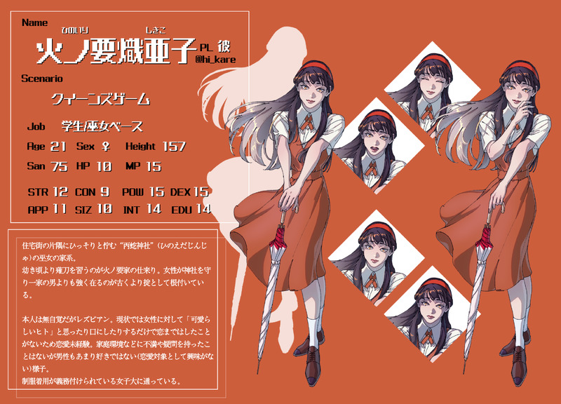 kare_trpg☆quiet followPASTPC紹介▼【火ノ要熾亜子】通過シナリオ▼・クイーンズゲーム・黄昏の扉・夢結ぶ結晶 show all(+3 images) Tap to full screen (size:2500x1800).Repost is prohibited Let's send reactions! freqpopularsnackothersPayment processing Replies from the creator Follow creator you care about!☆quiet follow kare_trpgSPOILERネムカル現未×シナリオ通過しましたか?pass▷yes kare_trpgSPOILERホテセン現未×シナリオ通過しましたか?pass▷yes 4 kare_trpgDOODLEホテセン現未ってほどのものではないが、なんでも許せる人向け。テンプレ/斉さんからお借りしました!pass▷ok kare_trpgSPOILERジョジョ3部二次創作ゲーム『7人目のスタンド使い』三次創作漫画。ゲームのEDネタバレがある。主人公/大和 サクリファイスEDそれでも見ても大丈夫▷ok 8 kare_trpgSPOILERオルタナティヴダブル現未×シナリオ通過しましたか?pass▷yesやや注意 kare_trpgSPOILER口渇ルルパ現未×シナリオ通過しましたか?pass▷yes recommended works 水面(minamo)DONE食屍鬼街に遊びに来てるジョナサン🍽 3 麻辣香锅刃DOODLE卖屁股 33 NisanumakoDONEあトまつげんみ⭕️ 立ち絵差分まとめただけパスは4 5 ミイですSPOILERソープスクール 現行未通過❌ ネタバレあるよ初描きNPC、二枚目は好きな言葉いれて遊べるよっていう…多分需要はない、良識の範囲内でお願いします✌️ 2 m_yDOODLEベクター女体化♀セリフ飛んだ。オチなしヤマなし女体化描くの楽しい sayu_pwptDOODLE※他ジャンル絵(🥷🥚)推しが冷静でキラキラでサラサラでかっこよかった……という、特にネタバレでもないIQ3の軍師感想 SamuraiflameDONE[FFXIV] Miqo'te Black Mage ねぎみそ2DOODLEマロありがとうございました❣️高津くんもつけちゃった suikameloneDONE𝗖𝗮𝗹𝗹 𝗼𝗳 𝗖𝘁𝗵𝘂𝗹𝗵𝘂「探偵の最終定理」KP きょうさん 十河 十朗PL 水瓜 桜庭 響子シナリオクリア