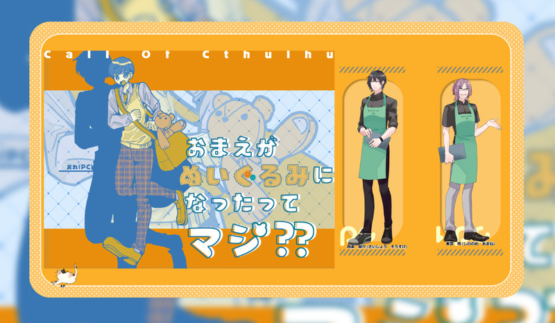 ONIGIRI_splash☆quiet followDONEクトゥルフ神話TRPG 『おまえがぬいぐるみになったってマジ??』PC/PL-西条 聡介/ゆらさんKPC/KP-東雲 周/PAJI∔END-A∔うさぬいになって西条くんを振り回しました!かわいくて口角上がりっぱなしでした~このふたり大好きだ……感謝!「約束、するよ。……でも、体が勝手に動いちゃうのは仕方ないよね?」#ぱじたく ##卓報告 Tap to full screen (size:1466x854).Repost is prohibited Let's send reactions! freqpopularsnackothersPayment processing Replies from the creator Follow creator you care about!☆quiet follow ONIGIRI_splashDOODLE2025/10/04クトゥルフ神話TRPG◤ 旅客叢書-秋の章 ◢KPC/KP:木下 千花 / 樽巣さんSKP:ゆらさんPC / PL犬飼 歩智 / PAJI久遠 緋色 / 砂糖さん神楽 壮一郎 / まさん▸ 全生還 2 ONIGIRI_splashDOODLE2025/10/04クトゥルフ神話TRPG◤ 旅客叢書-夏の章 ◢KPC/KP:木下千花 / 樽巣さんSKP:ゆらさんPC1 犬飼 歩智 / PAJIPC2 久遠 緋色 / 砂糖さんPC3 神楽 壮一郎 / まさん▸ 全生還にてシナリオ終了「みんなでお祭り楽しいね!」 4 ONIGIRI_splashDOODLE2025/09/06 - 2025/09/14クトゥルフ神話TRPG◤ 怪士係 ◢KP:夢乃 叶さんHO1:HO1-猫又 城虎 青臣 / リトさんHO2:HO2-狛犬 童鐘 満莉 / PAJIHO3:HO3-天狗 御咲 亮太 / ほーちゃん▸ 全生還「ラーメン食べに行きましょう」 2 ONIGIRI_splashSPOILER現行未通過✖主にHO2の落書き 4 ONIGIRI_splashSPOILERうすりび自陣はかわいい 12 ONIGIRI_splashDOODLE2025/08/30クトゥルフ神話TRPG◤ 風呂ホラーRTA ◢𝗞𝗣:PAJI𝗛𝗢𝟭 日向 和 / ほーちゃんEND A related works ONIGIRI_splashPASTCoC非公式シナリオ『まずはダイスを振れ、話はそれからだ。』https://www.pixiv.net/novel/show.php?id=7614149で使用した自作の素材&FAたち 6 ONIGIRI_splashDONEクトゥルフ神話TRPG 『おまえがぬいぐるみになったってマジ??』PC/PL-西条 聡介/ゆらさんKPC/KP-東雲 周/PAJI∔END-A∔うさぬいになって西条くんを振り回しました!かわいくて口角上がりっぱなしでした~このふたり大好きだ……感謝!「約束、するよ。……でも、体が勝手に動いちゃうのは仕方ないよね?」#ぱじたく ONIGIRI_splashDONE-𝑪𝒂𝒍𝒍 𝒐𝒇 𝑪𝒕𝒉𝒖𝒍𝒉𝒖-『美術館ホラーRTA』𝑷𝑪/𝑷𝑳-李 紫晶/lunaさん𝑲𝑷-PAJI∔𝑬𝑵𝑫-𝑨∔しっかりRP、しっかりRTAで駆け抜けました!最高にしびれるRPをしていただきました…!!『ご来館、ありがとうございました。』 ONIGIRI_splashDONEクトゥルフ神話TRPG 『思い立って5分で回せるデートシナリオ第6弾!クリスマス編』PC/PL-ノイギア・べセル/ほー浮海 遥那/飛んでくS極KP-PAJI空掴継続で来てもらいました!圧倒的KAWAIIを浴びさせていただきました………本当に可愛い…毎日デートしろ……感謝!#ぱじたく ONIGIRI_splashDONEクトゥルフ神話TRPG 『曇天に啼け、ルスキニア』PC/PL-HO1星神∔椿/紺狐さんHO2怪盗∔李 紫晶/lunaさんKP-PAJI∔END-A∔本当にRPがうまくて……!終始ニコニコで眺めさせていただきましたふたりだけの物語、大団円で駆け抜けられてよかったです!感謝!#ぱじたく ONIGIRI_splashDONE-Call of Cthulhu-『君にしか頼めないんだ、こんなこと』∔PC/PL-桜川 雅/ほーさん∔KPC/KP城崎 竜二/PAJI∔END-A∔======================================ドライブデートでたくさんお話ができました。お互いのこと知れて不仲説が払拭されました!やったぜ「ダーツバー楽しみだね」 ONIGIRI_splashDONEクトゥルフ神話TRPG 『果てにてカフネ_白』PC/PL-西条 聡介/ゆらさんKPC/KP-東雲 周/PAJI∔END-A∔「君のためならなんでもできる。ほんとうだよ」東西でHappyデートしました!幸せ空間でした…フウ……(えがお)感謝! ONIGIRI_splashPASTかいくら探索者立ち絵とNPC~~私のわがままで描かせていただきました喜んでもらえてほんとにありがたかったです 4 ONIGIRI_splashDONEクトゥルフ神話TRPG 『思い立って5分で回せるデートシナリオ第7弾!年越し&お正月編』PC/PL-赤羽 スザク/カンテラさんKPC/KP-ツルギ/PAJI∔END∔======================================新年はのんびり継続!おいしいもの食べていっぱいイチャイチャできて満足!感謝!「筋トレ一緒根頑張ろうねスザクさん^^^」#ぱじ recommended works きりゅーDOODLE夏っぽい?探索者です( ˇωˇ )暑さにはお気を付けください。 3 yome_firstDOODLE万里 真由 4 and81owlDOODLEPCの七星氏+α七星今私のTLに該当者3人いるけどPCは1人 はるろくんDOODLE手癖 らみ【基本trpg関係】DOODLE栗原くんからメリークリスマス(イヴ)顔がいいからコスプレ系のイベントは友達に強要される、が、やればノリノリこの後たぶん髭付けて「Ho,Ho,Ho」って笑かしにかかる ゆきやPAST鹿窪 はるか(かなくぼ はるか)特殊清掃会社の一班のリーダーhttps://iachara.com/sns/1333614/vie【クトゥルフ神話TRPG】探索者くんたちのログ置き場です。よその探索者さん達もお借りしてます。通過済の方は分かるかもしれない程度のネタバレも含みます。削除依頼がありましたらお手数ですが@moryuまでお声がけください。描いたらここに追加していきます。 11 はるろくんDOODLE巳谷らくがきそのうち色塗る yome_firstDONEここ最近のPC絵3 32 小鳥遊ミイアSPOILERソープスクール げんみ❌