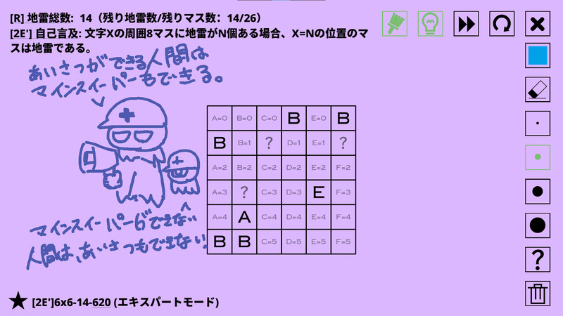 7okumei☆quiet followDOODLE「挨拶ができる人間は、マインスイーパーもできる。」自己言及のルールは対偶は成立するけど逆や裏は成立しない、が身に染みる。 Tap to full screen (size:1920x1080).Repost is prohibited Let's send reactions! freqpopularsnackothersPayment processing Replies from the creator Follow creator you care about!☆quiet follow 7okumeiDOODLE 7okumeiDOODLE「挨拶ができる人間は、マインスイーパーもできる。」自己言及のルールは対偶は成立するけど逆や裏は成立しない、が身に染みる。