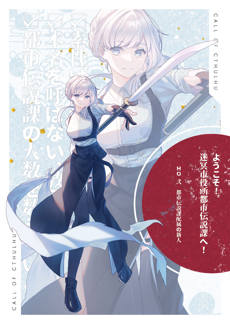 にこ🤐☆quiet followSPOILERCoC『ようこそ!迷冥市役所都市伝説課へ!』HO2-都市伝説課配属の新人:白雪(しらゆき)※2枚目以降、現未❌※エンドカードはKPのsoyさんからいただきました!有難う御座います! ##都市伝説課 ##ディスプレイ show all(+20 images) Tap to full screen (size:2508x3541).Repost is prohibited にこ🤐SPOILERすいなぎ ネタバレ⚠️ 2 にこ🤐SPOILERクロリナ 現未❌CoC『○○○○○○○○○』リザルト にこ🤐SPOILERVOID 現未❌CoC『HELLO,HUMANS!』リザルト にこ🤐SPOILERムンエラ 現未❌ 3 にこ🤐DONECoC『ムーンエラーアウトサイダー』HO1-キミは視える:群雲 颯(むらくも はやて)ディスプレイ素材:くめさん(@kume_tr) 12 にこ🤐SPOILERパラクラ 現未❌ 2