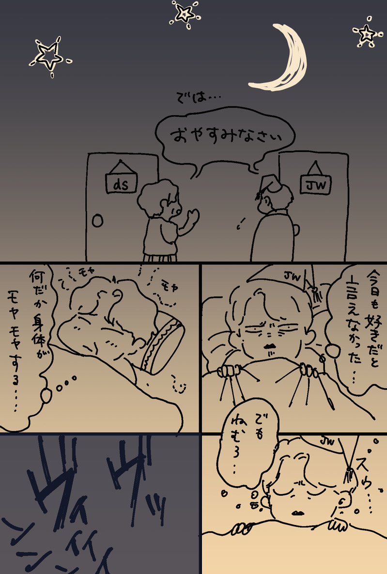 薄い壁を越えられない両片想いの同居jwdsのしょうもない話です。