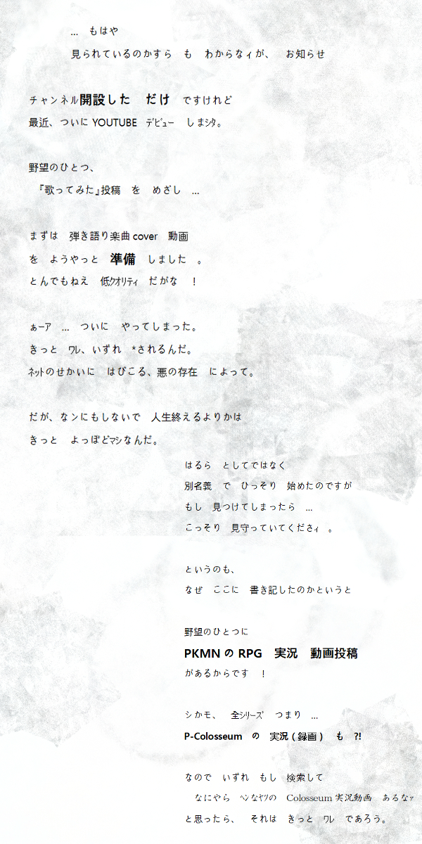 はるら☆quiet followMEMOしかシ …インターネットが壊滅する事態 も想定しなければ ならなィ。顔出し ヤダけどそのときは 諦めて道芸 するんだろうか …石 投げられそう。+ + + show all(+1 images) Tap to full screen (size:600x1200).Repost is prohibited はるらMENUサブスクで流し聴きしていたときふと耳に入ってきて、ぼろ泣きした曲を ...https://youtu.be/aqFtpQ0EnRg?si=oENdG1UOmlIt_9Wy+ + ずっと、1次創作のためにSunoAIをいじってたんですが(かなり良い)、けどやっぱりだれかがつくった作品ってなにものにもかえがたい、すごく尊いです芸術は、いきざま。+ + + はるらREHABILIまたも、お久しぶりです!(虚空に向かって)すっかり1次創作に夢中になっていたところなんと、なんとやばないですか。Switch実装ですか?ほんとですか?てれび買う必要なくなりました。しかシかんじんのSwitch手にはいるの いずこもともこもね。クソっ、いまにみてろよ!+ + + 2025.08 はるら はるらMEMOおひさしぶりです! って、だれも見ていないとはおもいますが...あいかわらずの 雑クオリティ絵です。情けないことに 精神的に 参っていてここのとこ 絵を描けねえでいました。前を向けるようになったとき、ちょうどP-Coliseumの 21周年記念日だったわけです。 うれしイ うれしィしかシ… リメイク Switch実装 待つの、そろそろ あきらめたほうが 良いんですかね?笑 はるらMEMO世間をながめていても、実際に身近で起きた色々なことを考えてみても。 たいせつなのは倫理や道徳、哲学の分野なのだと実感する。「隠された本性」など、取るに足らないものだ。「それでも 善に向かって生きていこう」とあがく姿は 希望なのだから。https://youtu.be/D_qkQGS9-yk?si=bfj0Wc19y3bmWNRTLet Me Hear(Piano) 2 はるらDOODLE[P‐coliseum]OH MY MASTER※ キャラ設定捏造 ※ 特に レオ氏、 崩壊注意https://poipiku.com/7912924/9428509.htmlの つづき…+ +完結した はず だったのに、まァた 思いついてしまった yo 。+しかシ レオ氏の顔 … すまなィ。( 某パロ。 ちゃんと模写、できてるか…? )+ + + 21 はるらPAST[P‐coliseum]雑マンガいちにち早いけれど、過去作品を記念日 投下。+ +ギャグ寄り。独自の キャラ設定が確立していなかったころだったのでわずかに修正しました!半年くらい前 ? なつかしい。+ +PKMS 進出…じぶんも そうだけれど、当時 この予想に 至ったひとまぁまぁ いたらしィ+ + + 13 recommended works 紗倉@ぺごDOODLEミクさん#初音ミク #VOCALOID きめらぶーす。INFOアクリルストラップ【VOCALOID】/6種https://zanxnen.booth.pm/items/213483クリプトンボカロのアクキーです。 2 チャンプルーDONEミクの日ですね 2 もやしDOODLEミクちゃん可愛い好き← nAmuDOODLEねむい 2 アグリィDONE『マトリョシカ』透明水彩の練習&昔のイラストリメイクがてらマトリョシカ描きました!うーん、とにかくはみ出しが酷い(笑)水分が多すぎなのか、じわじわと肌の部分や白紙部分にはみ出して変になってしまった…😞2枚目は過去に描いたやつ(水彩色鉛筆)日付書いてなかったから不確かだけど、多分、7.8年くらい前だと思う…(たぶん!!)昔と比べると少しは成長できたかな?2019/06/15 2 しろりすPASTコピック 茶屋YYYDONE改めてみく詰め 6 有栖川DOODLE