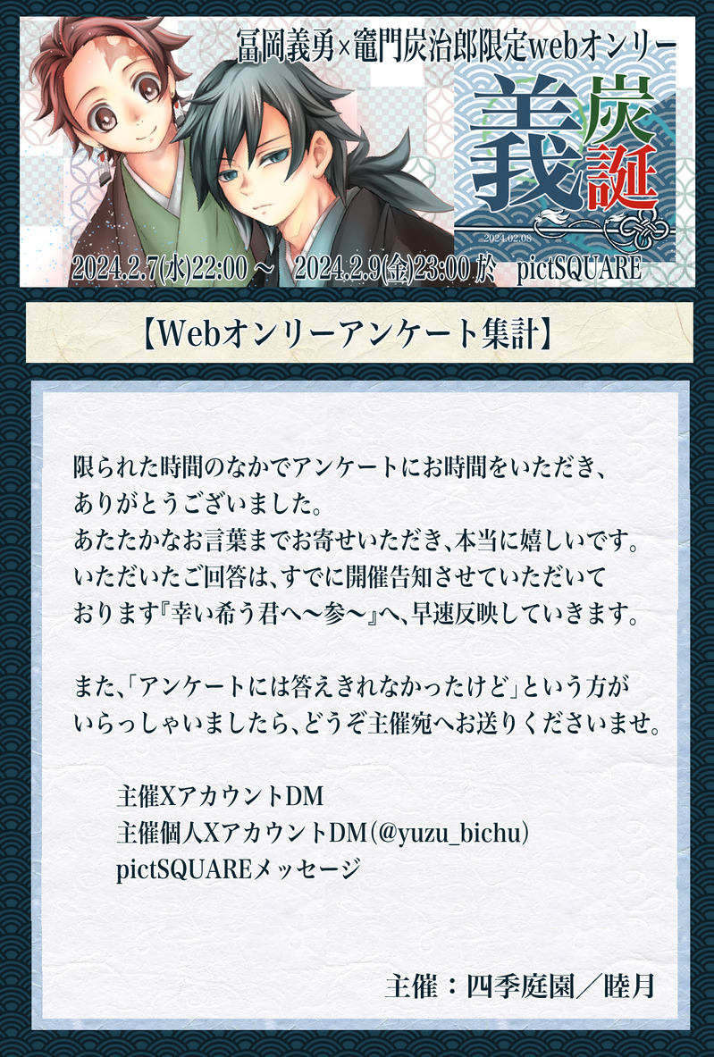 義炭誕20240208にて、Webオンリーアンケートを設置させていただきました。