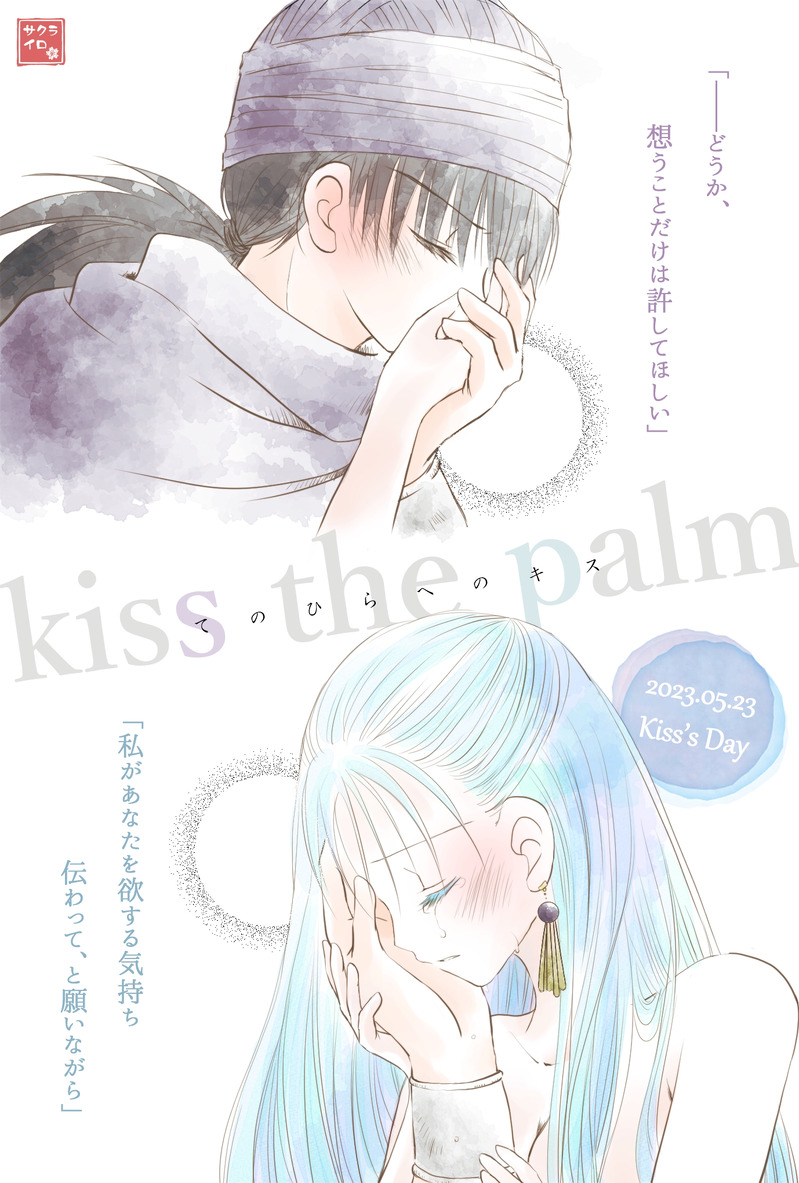 自作小説より、第一幕の求婚前夜テュール&END後R18エピの『奈落の灯』よりフローラを。どちらも「手のひらへのキス」です。