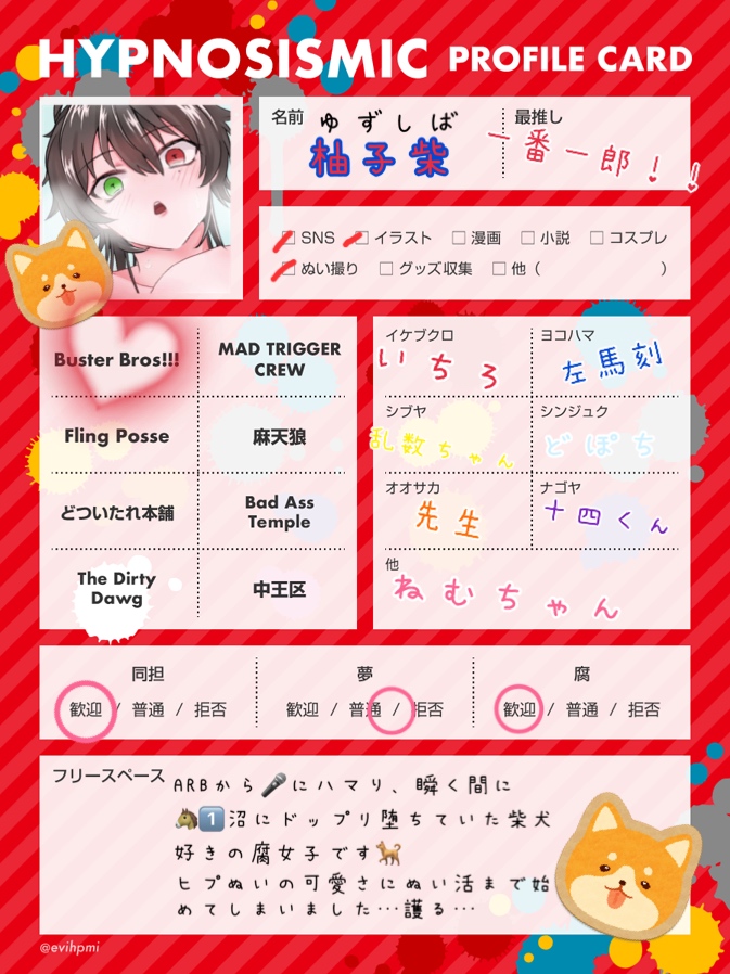 今更ですが#ヒプマイ自己紹介カード お借りしました〜