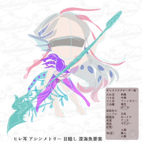 「ヒレ耳 アシンメトリー 目隠し 深海魚要素」