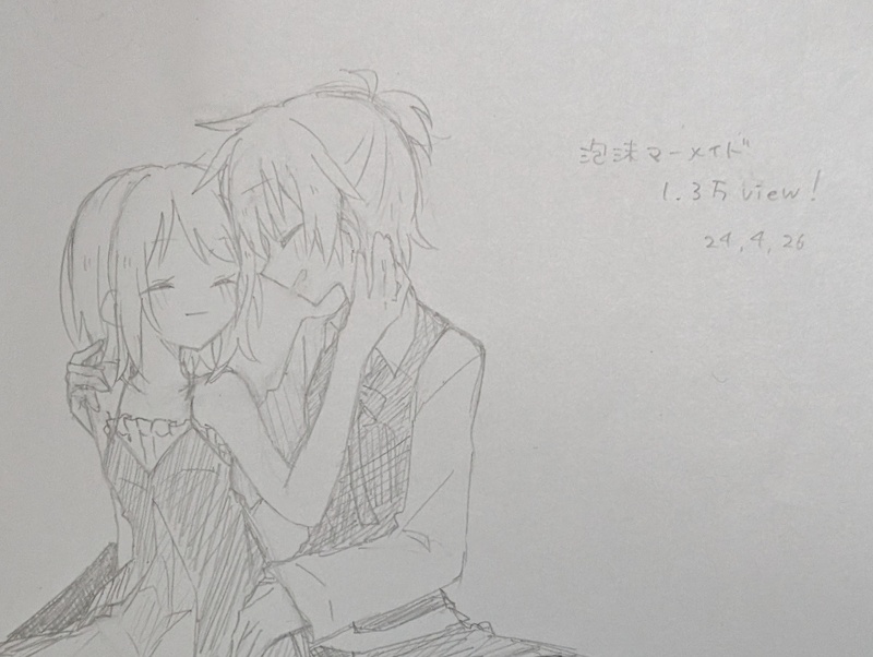 この間、泡沫マーメイドがついに1.3万回再生を迎えたので、その嬉しさで描きました。