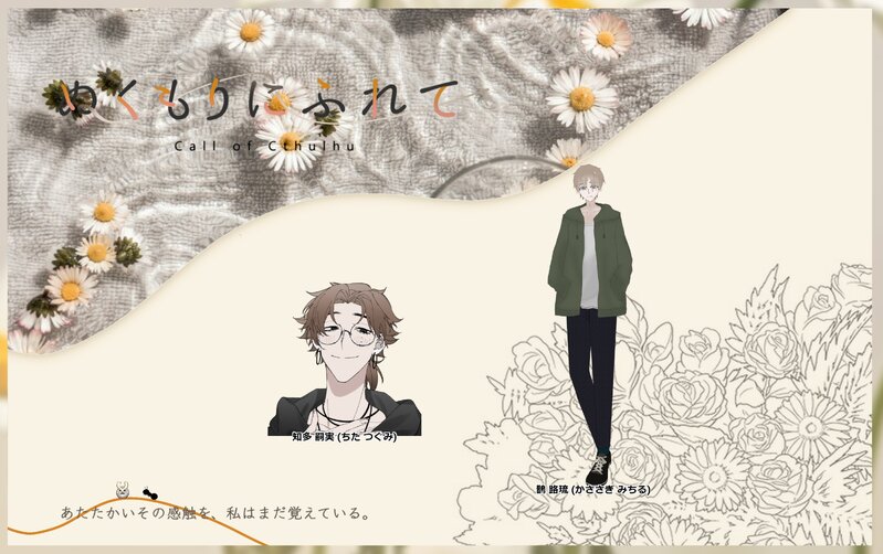 otyaduu☆こそフォロネタバレ【卓報告】CoC ぬくもりにふれて▼KP 鵲 路琉/ザザリ▼PL 知多 嗣実/えび(敬称略)▼生還/END 生還/エンドA▼日程 2023/12/22 タップで全画面(原寸:4096x2573)無断転載禁止 リアクションをたくさん送って応援しよう! よく使う人気おやつその他支払処理中 作者からのリプライ 気になる人をどんどんフォローしよう!☆こそフォロ otyaduuネタバレ【卓報告】CoC PYX▼KP あおいとり▼PL オリバー・ラフロイグ/えび(敬称略)▼生還/END 第一章「天国は無人」 生還/END-A 第二章「濁流は無知」 生還/END-G 最終章「楽園は無貌」 生還/END L-side A▼日程 2024/06/17-2024/06/21 4 otyaduuネタバレ【卓報告】CoC 孕波羅蜜捺落迦参▼KP えび▼PL 楓山 薫/キッカさん 安黒 來白/ちまたさん (敬称略)▼生還/END 一生還一ロスト▼日程 2024/06/16 otyaduuネタバレ【卓報告】CoC ロトカ・ヴォルテラの愛堕討ち▼KP ばんび▼PL HO1 檮原 璃星/毛皮 HO2 揚羽 雲雀/えび(敬称略)▼生還/END 両生還/エンド1▼日程 2024/06/08 3 otyaduuネタバレ【卓報告】CoC その理由を龍は知らず▼KP 八十八 零弐/ザザリ▼PL 山崎 和真/えび(敬称略)▼生還/END 両生還/END A▼日程 2024/06/01-2024/06/05 otyaduuネタバレ【卓報告】CoC KPCが猫拾ったって言ってるけどどう見ても猫じゃない件▼KP スーラン/えび▼PL 千ノ本 優幸/いち(敬称略)▼生還/END 両生還/エンド2▼日程 2024/06/04 otyaduuネタバレ【卓報告】CoC 膿み堕とし▼KP あゆ▼PL HO壱 椿井 幸/えび HO弐 鬼灯 羽芽/てんか HO参 樂羅 玖喰/ザザリ HO伍 瑞善 一桜/31(敬称略)▼生還/END 全ロスト▼日程 2024/03/27-2024/06/02 2 おすすめ作品 マキタロらくがきちーかわ 鎧受け 地平線らくがきvoxal Rikuできたヌヴィリオ♀⚠️受けの女体化大遅刻0721の日パス 18↑?(y/n) 3 Moynaらくがき lil_pradlyrらくがき 3 mqube015らくがき 想睡觉又睡不着かけねえ Kathylizfox🪷🍎できたApril of Easter Artwork commission : iPA.R.T.S POI11392379らくがき 1630