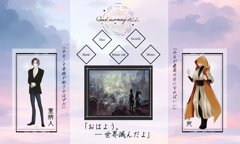 otyaduu☆こそフォロネタバレ【卓報告】CoC Good morning ALL▼KP キッカ▼PL HO不老不死 イチ/えび HO重病人 谷川 秀真/卓士(敬称略)▼生還/END 両生還/エンドA▼日程 2024/04/20 タップで全画面(原寸:1164x696)無断転載禁止 リアクションをたくさん送って応援しよう! よく使う人気おやつその他支払処理中 作者からのリプライ 気になる人をどんどんフォローしよう!☆こそフォロ otyaduuネタバレ【卓報告】CoC PYX▼KP あおいとり▼PL オリバー・ラフロイグ/えび(敬称略)▼生還/END 第一章「天国は無人」 生還/END-A 第二章「濁流は無知」 生還/END-G 最終章「楽園は無貌」 生還/END L-side A▼日程 2024/06/17-2024/06/21 4 otyaduuネタバレ【卓報告】CoC 孕波羅蜜捺落迦参▼KP えび▼PL 楓山 薫/キッカさん 安黒 來白/ちまたさん (敬称略)▼生還/END 一生還一ロスト▼日程 2024/06/16 otyaduuネタバレ【卓報告】CoC ロトカ・ヴォルテラの愛堕討ち▼KP ばんび▼PL HO1 檮原 璃星/毛皮 HO2 揚羽 雲雀/えび(敬称略)▼生還/END 両生還/エンド1▼日程 2024/06/08 3 otyaduuネタバレ【卓報告】CoC その理由を龍は知らず▼KP 八十八 零弐/ザザリ▼PL 山崎 和真/えび(敬称略)▼生還/END 両生還/END A▼日程 2024/06/01-2024/06/05 otyaduuネタバレ【卓報告】CoC KPCが猫拾ったって言ってるけどどう見ても猫じゃない件▼KP スーラン/えび▼PL 千ノ本 優幸/いち(敬称略)▼生還/END 両生還/エンド2▼日程 2024/06/04 otyaduuネタバレ【卓報告】CoC 膿み堕とし▼KP あゆ▼PL HO壱 椿井 幸/えび HO弐 鬼灯 羽芽/てんか HO参 樂羅 玖喰/ザザリ HO伍 瑞善 一桜/31(敬称略)▼生還/END 全ロスト▼日程 2024/03/27-2024/06/02 2 おすすめ作品 maiwaydezらくがき魅魔琥珀,一切为了……密码是cp缩写 8740 コノハラらくがきルデラチ Fezらくがき🎭🍦 和泉のお部屋らくがき今日のハイノイもコッチで。最近微妙に五枚目行くなぁ。お題で『こっそり繋いだ手が温かくてにやけそうなのを耐えていたけど、目があったらつい顔が緩んでしまった』が出たので書き始めたら、思ってたのと違う方向へ行ってしまった。で、無理やり入れ込んだ形になりました。 3327 にっっくにく作業進捗そりゃっ タイヤキらくがきサイレンラストネタバレ🚨 サイレンげんみ❌「生まれ直した日」🔑→ok インヨ少女できた🧡エグシャリ 💚🧡이그샤리 💚워터마크 제거 ver ウォーターマーク削除ver 5 タスケテ~らくがき🐈の胸を揉む🌙 まんぢゅ🐾らくがき🦗