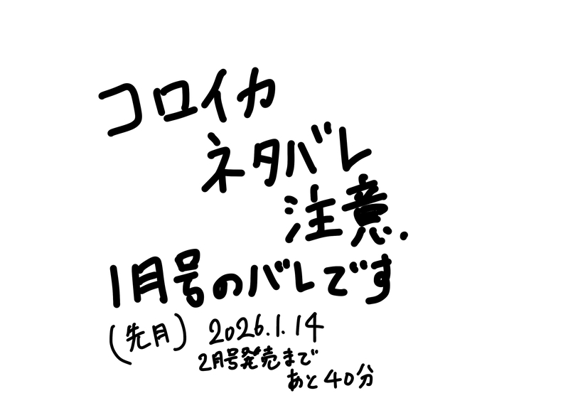 ヨカタマ☆こそフォロらくがき2026年今年初投稿が感想記事で失礼伏せったに書いたことと同じこと書いてるかも今夜最新号出るのでその前に と思い本誌バレです。ご注意ください。 すべて表示(+3枚) タップで全画面(原寸:1618x1134)無断転載禁止 リアクションをたくさん送って応援しよう! よく使う人気おやつその他支払処理中 作者からのリプライ 気になる人をどんどんフォローしよう!☆こそフォロ ヨカタマらくがき2026年今年初投稿が感想記事で失礼伏せったに書いたことと同じこと書いてるかも今夜最新号出るのでその前に と思い本誌バレです。ご注意ください。 4 ヨカタマらくがき描き納めは落書きで今年もマイイカタコ、コロイカのイラストを描くことができました来年も愛でていきたいですよいお年を〜 2 ヨカタマできたメリクリ🎄🎁 ヨカタマらくがきマイイカタコよりジョー と マイイカタコの一日の過ごし方ジョーはクルマの整備屋さんゴンズイ地区とかはぼろぼろの車も多そうなのでお客さんがよく来るし、顔馴染みも多い的設定実際はこんな転がして運ばないような気がしますがヨカタマ自身が今日交換したノーマルタイヤを転がして運んでいたので😅 2 ヨカタマらくがきマイイカタコで冬の好きなとこアチアチのお風呂(でも長い時間は浸からない) 2 ヨカタマらくがきネタバレ注意ですめっちゃ落書きラストはネタだとしても見たくない人は避けてくだされ(間に一枚挟んでます 結局ビビってモザイクかけてる) 6