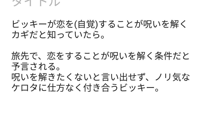 リビットの通行人1☆quiet followBLANKかんがえちゅうの次回作。やりたいけどちょっと難しいね|˙꒳˙) Tap to full screen (size:1080x608).Repost is prohibited リビットの通行人1PROGRESS*本日の目標*ストーリーに勝ち負けを作る。序盤で主人公の勝利条件を明確にする。 5 リビットの通行人1INFO 584 リビットの通行人1INFO藤目×アルバイターちゃんの長編、冬までにとか言ってたけど、思いつく展開に書くスピードが間に合わないので冒頭だけ供養。私は諦めが早いんだ。突然ですが、自分でプロット作ってて思った。うんお前の筆速じゃ絶対無理だわ延期。雪が解けた春にお会いしましょう!!ではでは!!('ω')ノ 12 リビットの通行人1DOODLE姫様と出会う前の旅するビッキーの話( ・ㅂ・)んなプラプラしてるとアイツいつか捕まるぞ 2 リビットの通行人1PROGRESS個人的にここから先が気に入ってる( ・ㅂ・) リビットの通行人1PROGRESSこれでまだ3万字…( ・ㅂ・)え、待ってあとどんくらい…?冬までに終わる??あれ?? recommended works リビットの通行人1DOODLEその2。何もかも失ったビッと何も得たことがないふっじを引き合わせたらどうなるかな、っていう思考実験のひとつ。#君が死ぬ日は花曇 2 リビットの通行人1PROGRESS先生の語彙力に書き手が追いつかない問題にぶち当たって詰んでるなう( ・ㅂ・) リビットの通行人1PROGRESS前半出来てきた( ・ㅂ・)ワクワクもうちょっとボリューミーにするつもりでいたけど飽きれば即刻削ってしまう癖があるのでこんなもの。うう…伸びない…9月に完成とか豪語してたの誰、私だね。構成に時間かかりすぎてもう10月… リビットの通行人1PROGRESSぬあーーまだ1部うおあああ先がぉああ先が長いぃいいい先がああああ(発狂寸前) cynicwsDOODLE程光ちゅーの続き。具体的ではないけど汚い方の下ネタ注意。 3 卣(ュゥ)DONE❖ 描き納め 2024 2 無音缶SPOILER遺香廻りげんみ✖カラオケで遊ぶ用に描いたやつ 曲パロ 5 tamanegishitaDOODLEロンロンメインらくがきロンロン喋りますパスワード→LONLON 4 ひすいDOODLEトーマスを思いついた構図で描いて見た(30分クオリティという、ガチの落書き)