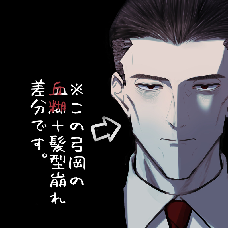 弓岡に血糊ばちゃばちゃしてたらTLに流せないものになったので供養させてください~!!pixiv小説表紙用なので血糊の方にはタイトル入ってます。