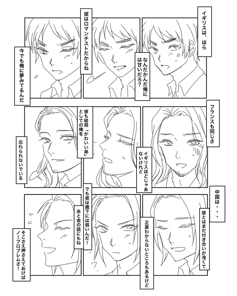 とろみ☆quiet followMOURNINGまっしろだけどリメイクしたはるまち。情勢が情勢なのでポイピクで供養🙏とくにRとかではないけど一応ワンクッション。🌾のこと唯一甘やかさない❄️さますきだな〜ってだけ。 #ヘタリア hetalia #春待ち waitingForSpring show all(+2 images) Tap to full screen (size:2000x2500).Repost is prohibited Let's send reactions! freqpopularsnackothersPayment processing Replies from the creator Follow creator you care about!☆quiet follow とろみPROGRESSめだ箱オマージュはるまち描きかけ 12 とろみDOODLEヘタミュ記憶掘り起こし〜〜ナンブラもよかったねラクガキ🥹ナンブラの当て馬にされるフラ兄さん…どゔぁの煽りに使われるめりか…どの視点で見てもおもろかったナ☺️ とろみDOODLEヘタミュのここマジで熱かったな〜…セリフマジで忘れたけど、世界でただ一人!ってとこめちゃ印象に残ってる…俺、とは言わず、世界でただ一人!とだけ言うの、熱い…マジで少年ジャンプすぎるよどばぁ…🥹 とろみDONE風さんお誕生日おめでとう小説(めっちゃ短い)です〜〜〜間に合わなくてごめんなさい!風さんおめでとう!!⚠️がっつりCPとかではないですが、風ヴェル要素あるので注意です 1587 とろみMOURNINGわりとがっつりえいべいなので地雷な人は注意。右だけど顔つきというかスタンスは攻めな🌾がすきなんだよな…………という性癖。 6 とろみMOURNING味音痴+おにーさんの薄暗漫画。あの時ちゃんと殺しておけばよかったのにね、っていう。 4 related works おーさくDONE⚠3次創作某殿堂入りしたmmdの彼らがしんどい とろみMOURNINGまっしろだけどリメイクしたはるまち。情勢が情勢なのでポイピクで供養🙏とくにRとかではないけど一応ワンクッション。🌾のこと唯一甘やかさない❄️さますきだな〜ってだけ。 3 の〜づTIREDにょたりあ 3 の〜づDONEふへへ とろみPROGRESSめだ箱オマージュはるまち描きかけ 12 fanowoPASTアメリカマジ可愛い 4