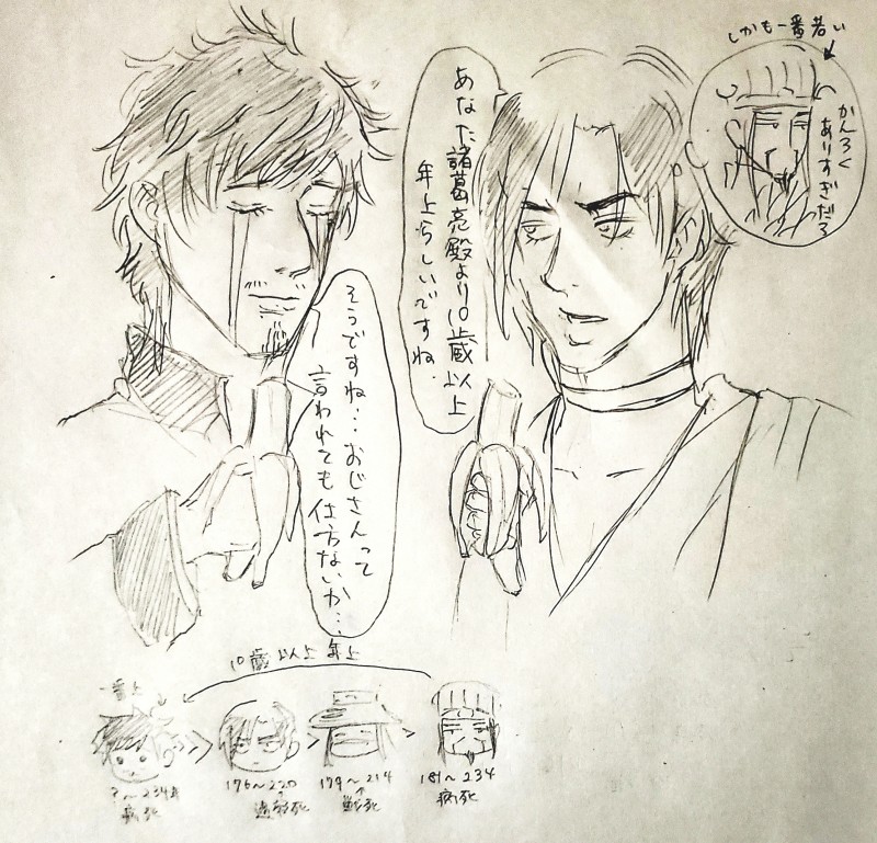じょしょは他の軍師より10くらいは歳が離れてるらしいです。…だから撃剣おじさん…