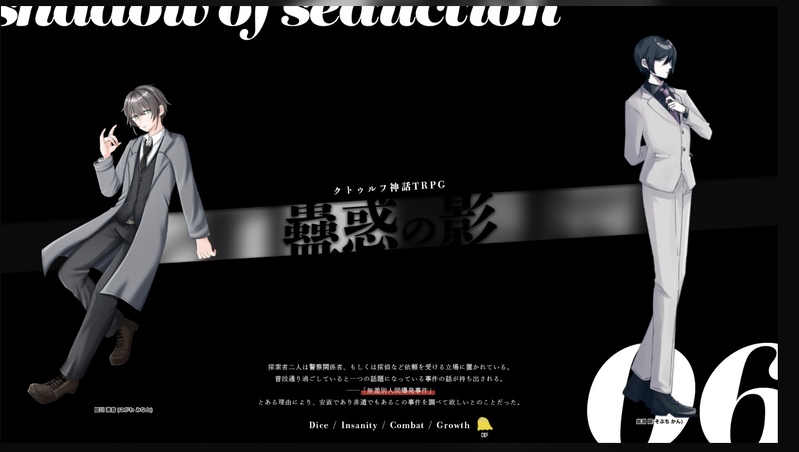 ayato_pgs☆quiet followINFOCoC「蠱惑の影」KP/KPC 寝さん/鼠淵 閑K PL/PC 綾斗/狐川 湊音-エンドA 両生還- Tap to full screen (size:1580x894).Repost is prohibited Let's send reactions! freqpopularsnackothersPayment processing Replies from the creator Follow creator you care about!☆quiet follow ayato_pgsINFOCoC「探索者:Uの証言」PL/PC hornさん/小田 麻希KP/KPC 綾斗/大椛 李-END D- ayato_pgsINFOCoC「おまえがぬいぐるみになったってマジ??」PL/PC 猫さん/式上 恭介KP 綾斗/湖山 莉愛-エンドA- ayato_pgsINFOCoC「探偵方程式」PL/PC 猫さん/式上 恭介KP 綾斗/湖山 莉愛-両生還- ayato_pgsINFOCoC「同じ空には昇れない。」KP しきやさんPL/PC(HO順) 綾斗/日向 渚 まめさん/朔 玄-エンドC-2- ayato_pgsDOODLE鈍は錆びす、人想う 現行未通過×なんか雰囲気が違うのが描けたので見比べ用2枚目のインナー+彩度低いやつは全陣描きたい、が、きっと全員完成するの年を越します 2 ayato_pgsPROGRESSじょかじょかHO♧ ラフここから大きく動かない気がするので