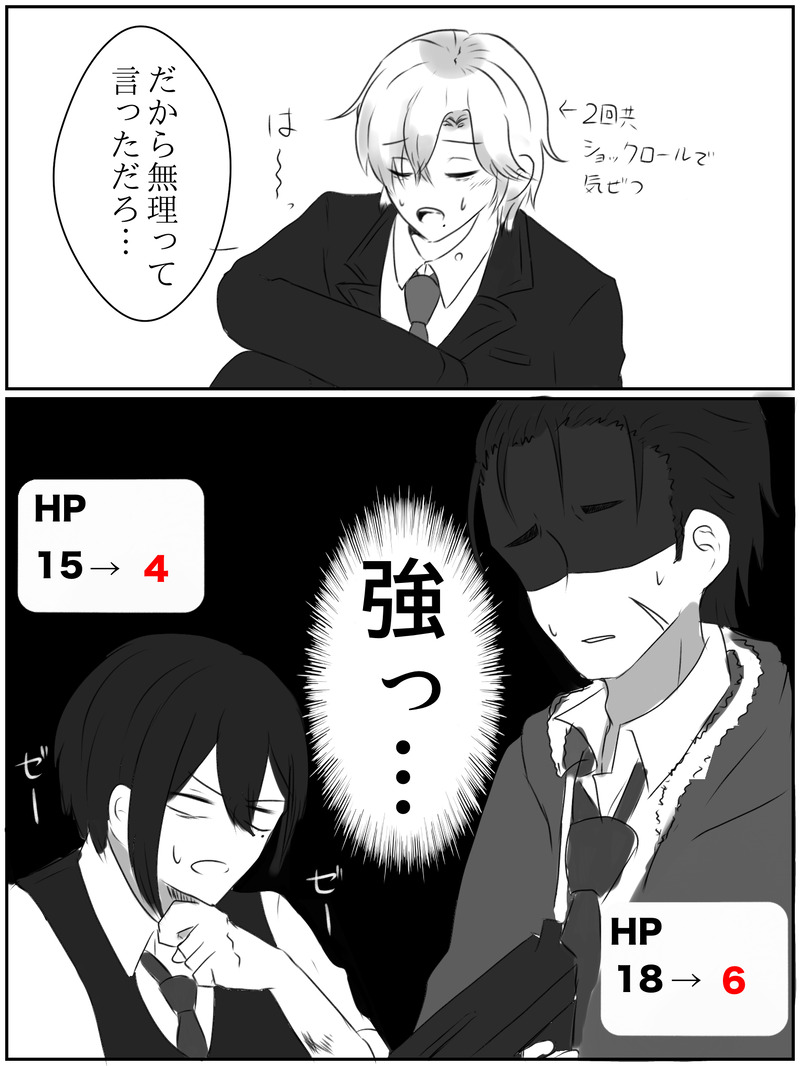 今日の雑談タブで模擬戦してた時の落書きマンガ