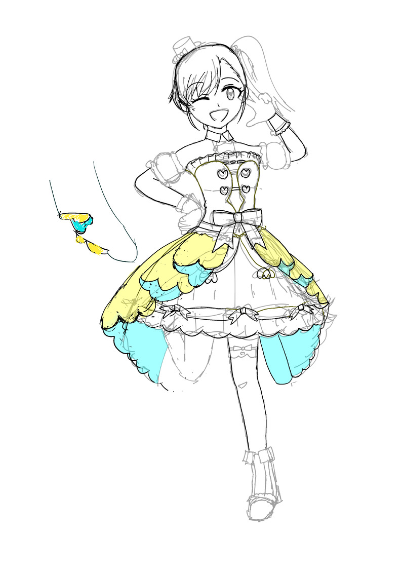 わからなさすぎて真美の横に謎の布が生まれてるね! 線だけだと本当に意味がわからなくて初めて途中で仮の色置いたり。