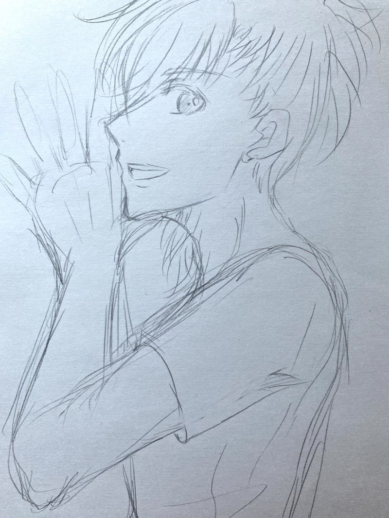 謎ポーズ。藍ちゃんが描きたかったんですよね。