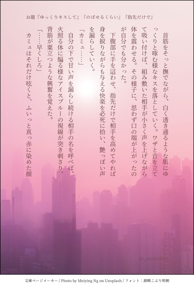 誤字してた:;(∩´﹏`∩);:「啄むような」じゃなくて「啄むように」かな…
