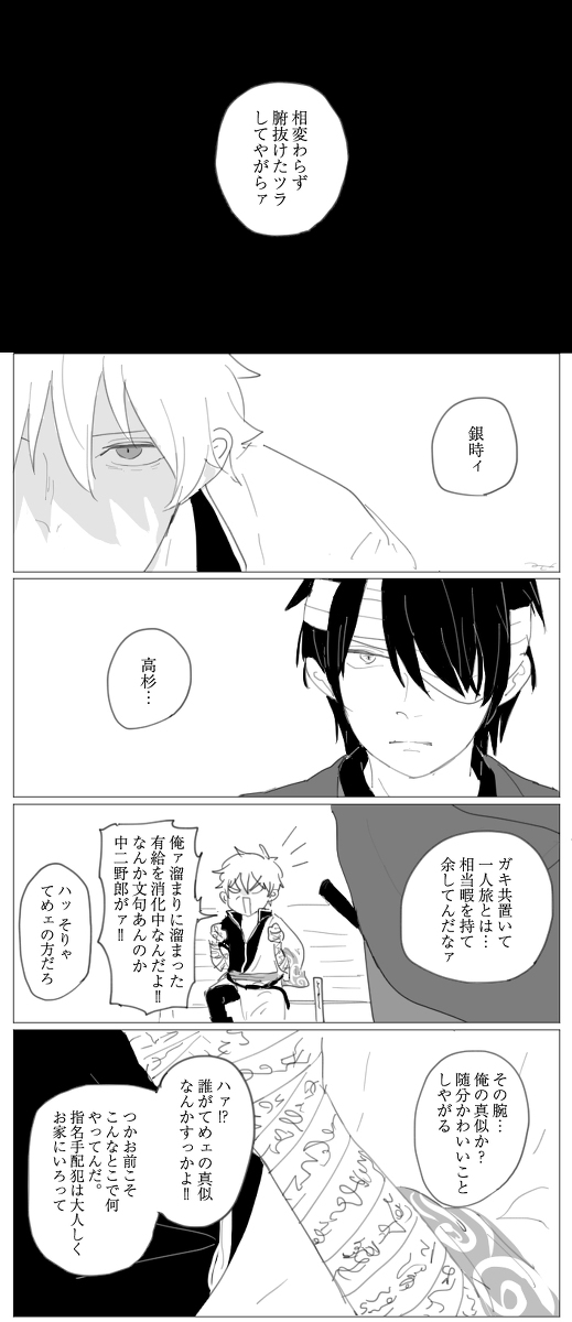 かぶき町から姿を消してちょっとくらいの銀さんと、そこに現れた高杉さん。終始背後が暗め。