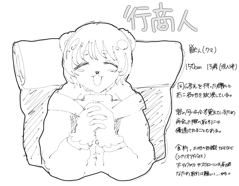 n4nana3☆quiet followMEMOシナリオに毎回でてくるちょいお助けNPC枠みたいな某ゾンビゲームの武器商人みたいな #慈悲なきアイオニア Tap to full screen (size:2161x1681).Repost is prohibited Let's send reactions! freqpopularsnackothersPayment processing Replies from the creator Follow creator you care about!☆quiet follow n4nana3SPOILERえちゃろぐ!※ネタバレ注意※マダミス「シュガーディア」「そらとくじらのエンゲ」 2 n4nana3MEMOシナリオに毎回でてくるちょいお助けNPC枠みたいな某ゾンビゲームの武器商人みたいな n4nana3SPOILER※ネタバレ※マダミス人間卒業 聴きながら振り返ると、良いな~と思う。 n4nana3SPOILER n4nana3SPOILER※ネタバレ注意※ マダミス亡霊島殺人事件NL&FL プレイ日記 n4nana3SPOILER related works n4nana3MEMOシナリオに毎回でてくるちょいお助けNPC枠みたいな某ゾンビゲームの武器商人みたいな _snowmaru_PROGRESS傭兵ネコおじ _snowmaru_DONE『騎士』装飾付き _snowmaru_DONE『騎士』 ゆめみめづDOODLE #遥か遠きエディンバラへ#慈悲なきアイオニア一応同卓者は注意、ネタバレはないです表情差分たち 12 _snowmaru_PROGRESSちびニール 家ノ丞DONEリンの村の伝説のNPC!ワンクッションは一応ネタバレ防止…突貫工事だけどとりあえず一旦完成としますあとで無配でもするか~という感じ 需要は知らん#慈悲なきアイオニア zncichiINFO慈悲なきアイオニア【霧より出でし】GM:ダイゴロウPL:まったり3人組ユラン🐲:潤ヒース🧙:アズミヤヒノキウィロール🌳:こばす recommended works kanonn_yPAST狂気山脈~邪神の山嶺~ に連れて行った孤高の登山家ヨネさんの立ち絵まとめ。ヨンネ=ベックマン。フィンランド人。「ヨンネが呼びづらかったらヨネでいいよ~」と「Moi!」が挨拶。+ラフ20210923 普段着差分追加 6 miiDONEてんかけまとめ 9 nagmo_crewmateSPOILER微バレかも?天使のエルと時計じかけの国ファンアートトーリョーとゼンマイなんとなく描きたくなってラフだけど。 obaketakuSPOILERネタバレかどうかわからないのですが、一応ワンクッション!ずっと狂気山脈を患ってる・・・本当にありがとうございました・・・。 2 slice1024SPOILERマダミス「キングを殺すには」ネタバレ感想 836 aprilfuji04SPOILER10/22に行ったCoC狂気山脈の想い出ラクガキシナリオのネタバレを含むので通過者のみ見てください! (通過者PW→yes)本編動画はこちら☟前編https://youtu.be/Me0FOJmVjwk後編https://youtu.be/RzJPd_fh1cY 3 しおんぬDOODLEらくがき穹丹 3 白桃ももぉSPOILERマダミス/エイダ 「エイダ」とは、何者だったのだろうか。自分の配信ロールプレイで使用したキャラクターイラストを描きました。PLだったので、最初のキャラ選択で見る情報を読んだだけでのイラストです。公式様と大幅に違います。既プレイ様方のイメージと合わない部分が多くあるかと思いますが、ご了承くださいませ。ぱくり、二次加工、無断転載、使用禁止いたします。 2 もくもくDOODLE梅崎くん〜こういう役珍しい気がするすごい好きだ…目にハイライトが入らない感じとか、クソデカ感情を隠して「そうですか?」とかすっとぼけかます所とか…良〜〜〜