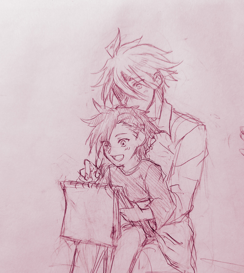一個前で金色の瞳の青年とブルーの絵を描いたので、ロッサが青年の絵を見てる感じ。