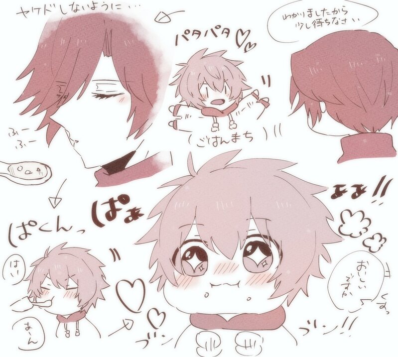 ショタ音也くんが火傷しないようにご飯を「ふーふー」してあげる子育てトキヤさんの落書き💜❤️